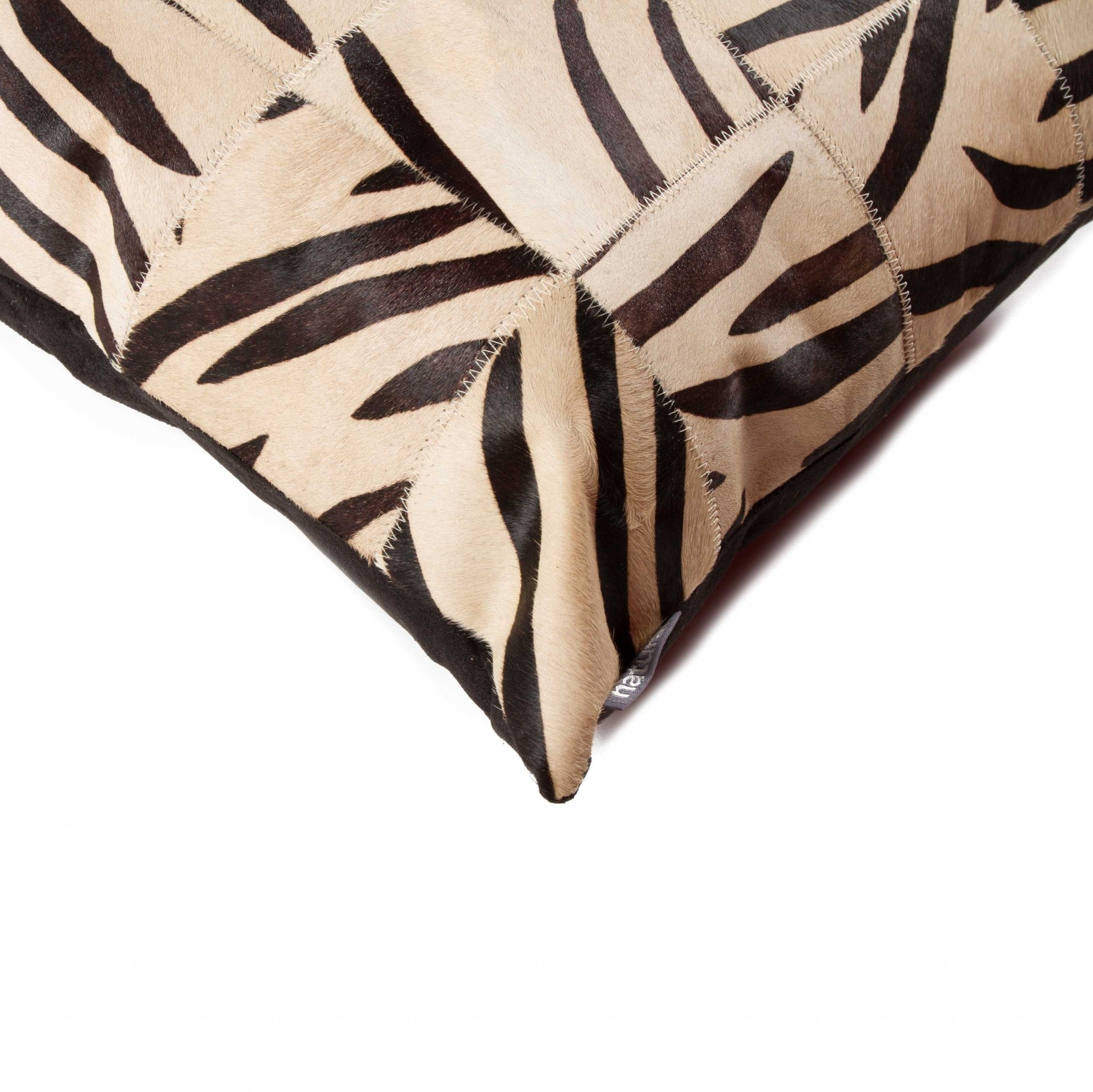 18" x 18" x 5" Zebra Black On White Patchwork Cowhide Pillow