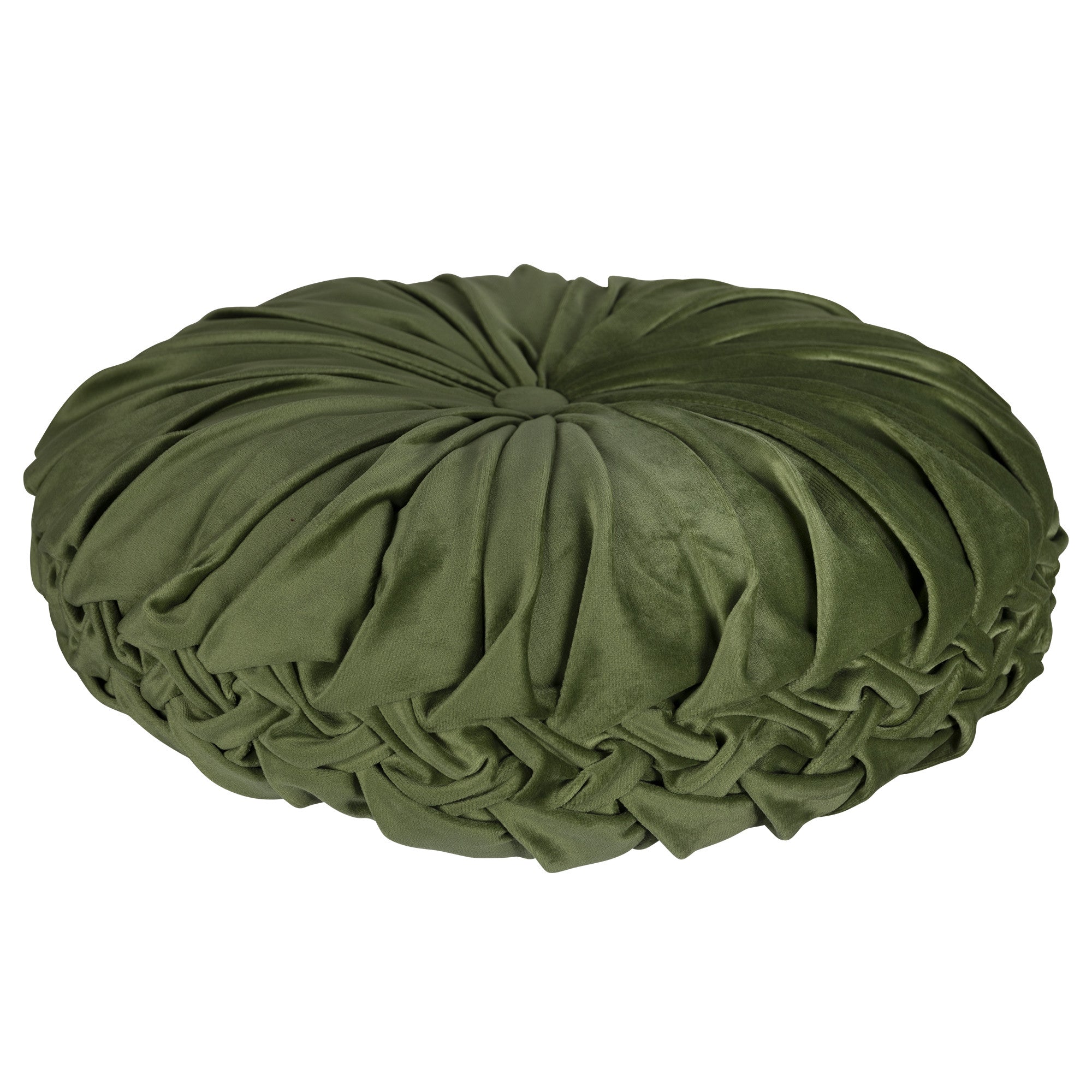 With the right color and style, pillows have so much decorative potential. Whether it's for the Sofa in your living room or the bed in the guest room, a pillow can instantly brighten up the mood, especially with a fitting texture or shape. The Round Tufted Velvet Green Pillow will give your space a boost of luxury. With a rich green shade, this round cushion will be a refreshing addition to your room. You will fancy its velvety texture, criss-cross side details, and tufted center. This pillow, made soft by 100% polyester fill, measures 15" W x 1.77" D x 15" H inches, expanding up to 3.50-inch thick when fluffed properly.