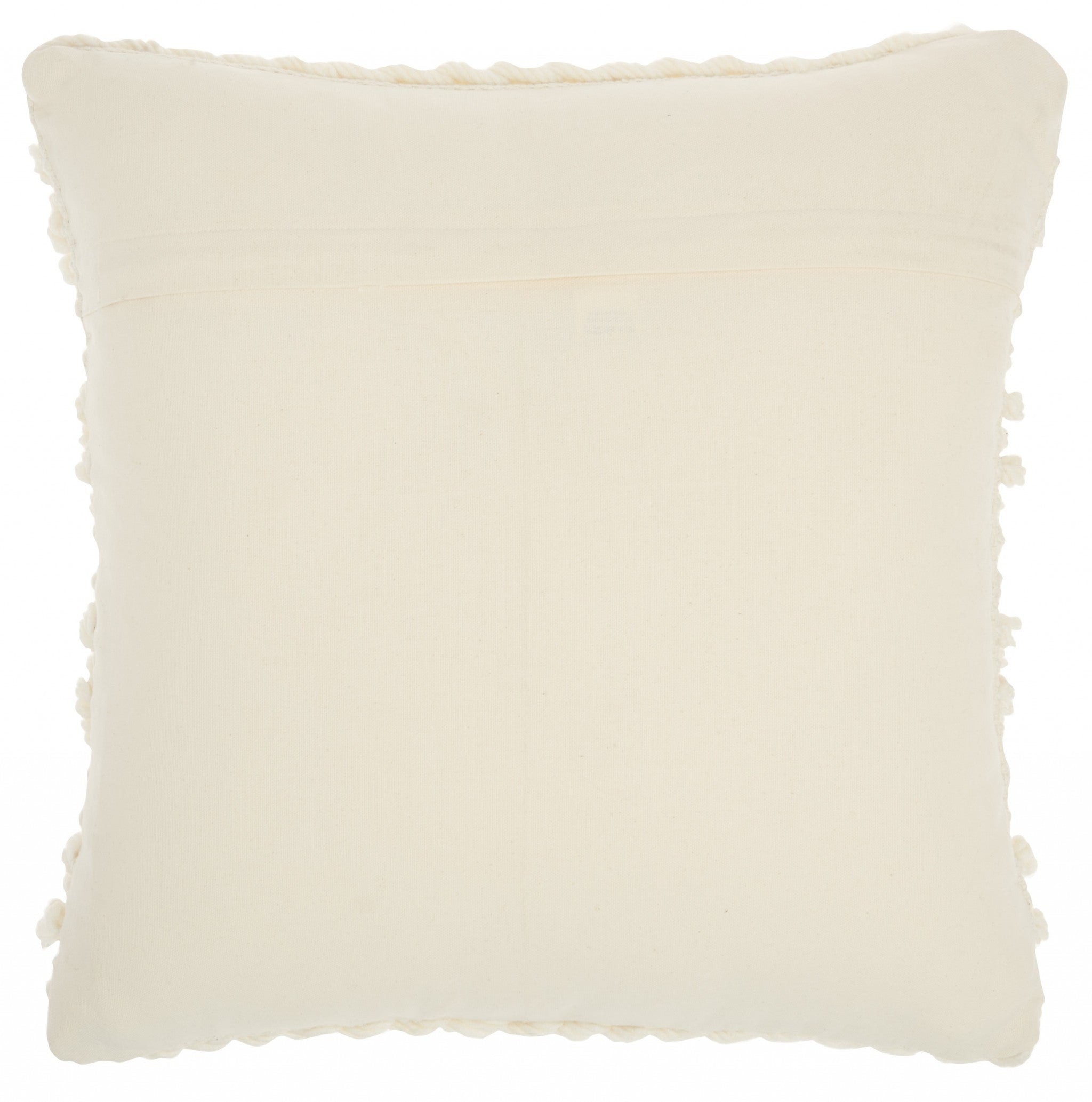 Set a calm and relaxing tone into your living space with this Ivory Textured Dots and Stripes Throw Pillow that is bound to upgrade the aesthetics of any casual or contemporary setting. Featuring a single hued color palette, this pillow is designed in a classic textural pattern with braided stripes and raised pom-pom to create a fun yet luxurious appeal to the entire piece. Carefully crafted with 60% cotton and 40% polyester, this decorative pillow is not only durable and easy to clean but also feels super soft on the touch. This classy and cozy throw pillow will serve as a great ornate accent for your bed, sofa, or chair while harmonizing with the modern decors of your interior. 18” x 18” x 5”