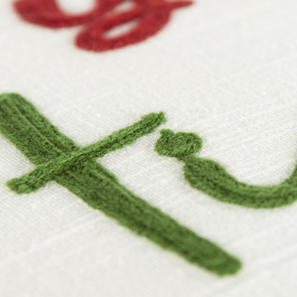 Themed in a wintry holiday vibe, this Ivory Tinsel In A Tangle Dimensional Throw Pillow is sure to brighten up any style of interior. A fun message stating ‘Don't get your tinsel in a tangle' is machine-embroidered in the center with hand-beaded lights replicating fairy lights and a pop of color in the form of red, blue, and green corner tassels to add a cheerful touch to the pillow. Crafted using a cotton material, the pillow is solid in the back with a hidden zipper closure for convenience. The pillow comes with a plush polyfill insert that provides a soft and cuddly feeling. The pillow is knife-edged for sharp borders and a polished look that goes with any interior décor. Update your interior style with this artistic throw pillow that will complement your modern, contemporary, and transitional décor. 20” x 20" x 6.25”