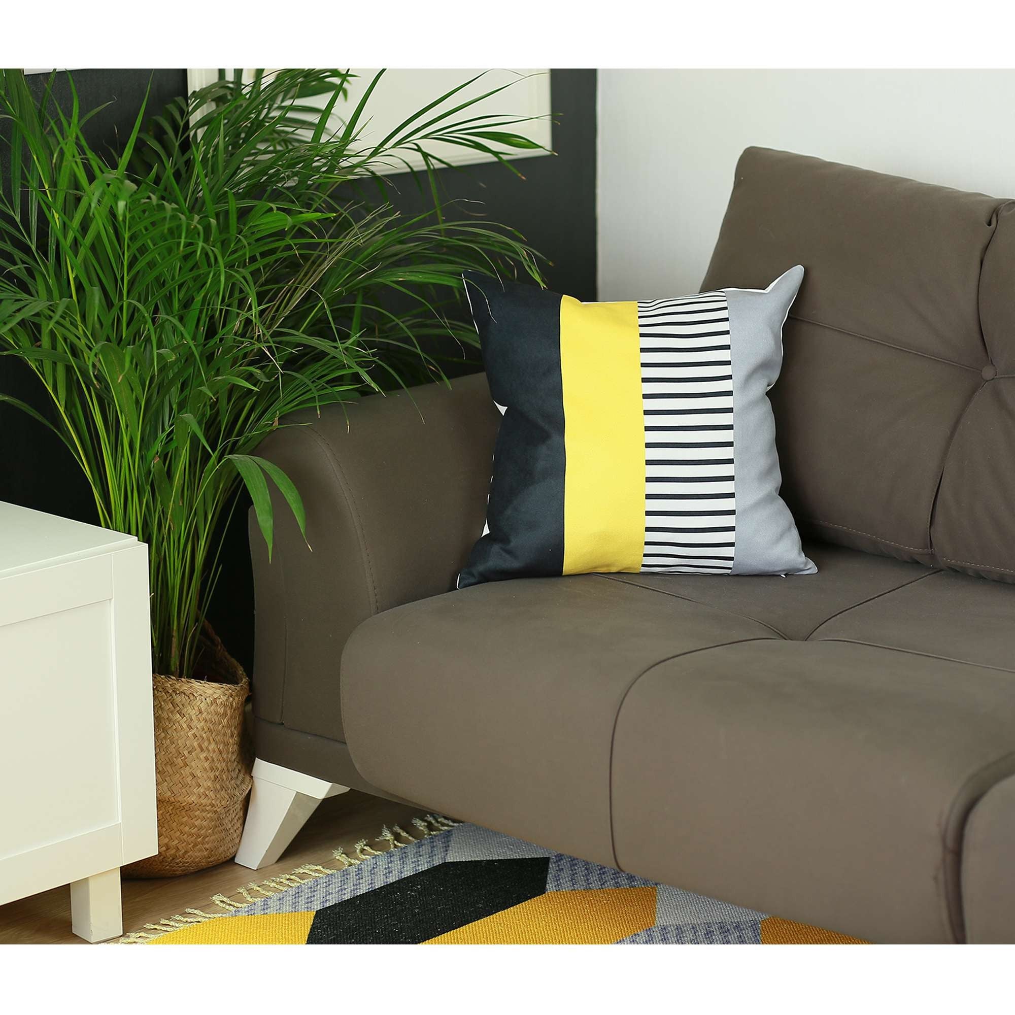 Expressing the clean-lined aesthetic of modern artistry, this Multicolored Mixed Striped Geometric Throw Pillow features a simple yet sophisticated design to add a stylish edge to your home. With four segments in black, yellow, gray, and monochrome stripes, this decorative pillow makes a bold statement in the room. Made to feel as good as it looks, this pillow features a 100% polyester fabric which is OEKO-TEX Standard certified to ensure durability, quality, safety, and color intensity. The uniform design stays seamless, with the zipper being tucked away out of sight in a hidden closure while the fluffy look and softness come from the high-quality polyfill insert. Standing out in style and modernity, this uniquely designed throw pillow will instantly jazz up your living room. 18” x 18” x 1”