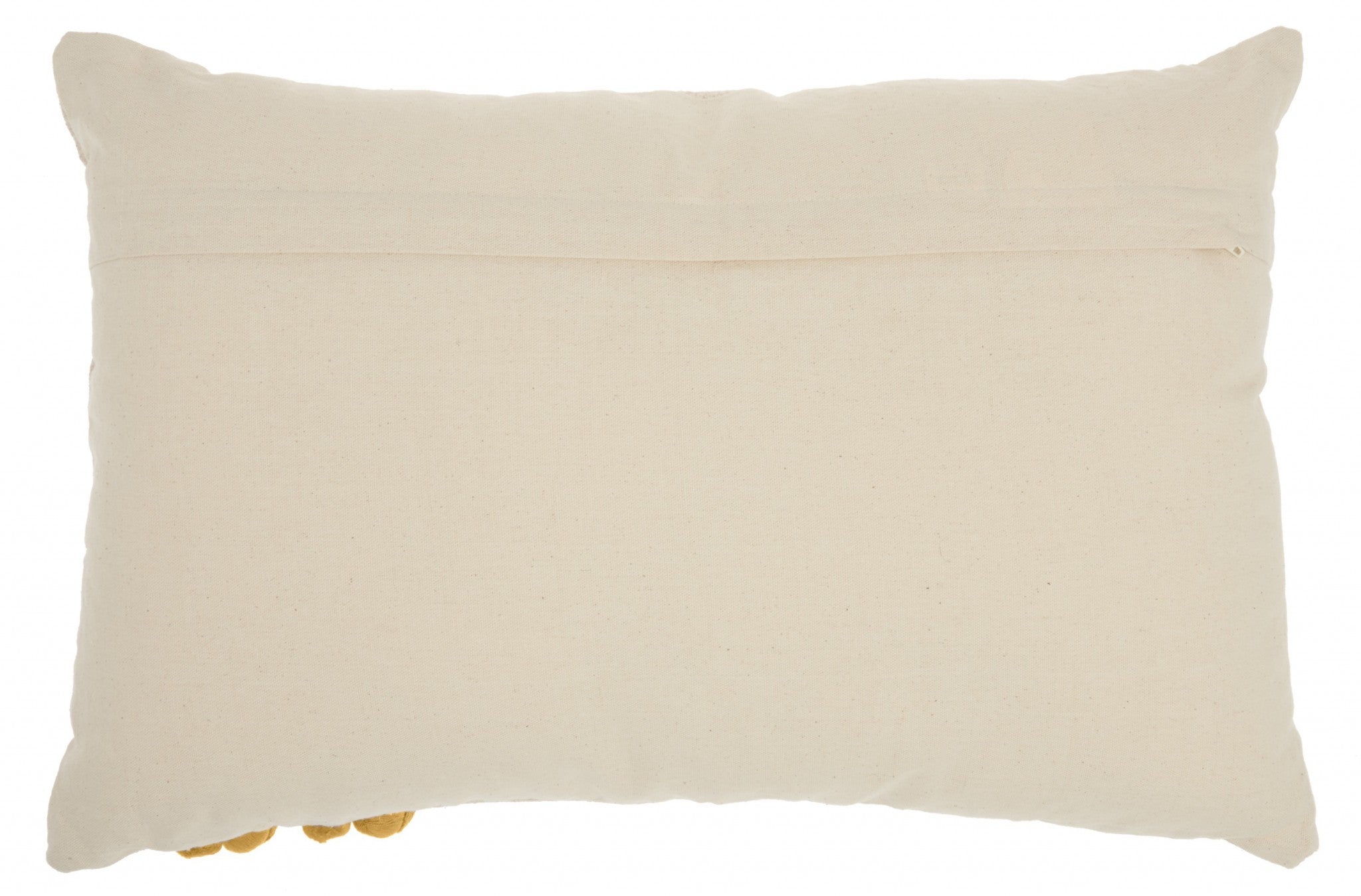 Add a soft and playful allure to your comfort zone with a Mustard Rectangular Embellished Throw Pillow that is able to make your space comforting and cozy while adding a fun and amusing decorative accent. The mustard yellow color is vibrant yet cozy making it welcoming for guests and family alike while the embellished pieces give a new dimension to the living space. Using a 100% cotton duck fabric, the pillow will never lose its shine or fail to accentuate your ideal look regardless of wear and tear. Bring forth the creativity you foster in yourself in a comfortable and appealing way with this distinctive piece. The gorgeous mandala print on the front is accented with fun bohemian style pom poms and has a slightly distressed printing giving this pillow a unique and fun vibe. 16” x 24” x 5".
