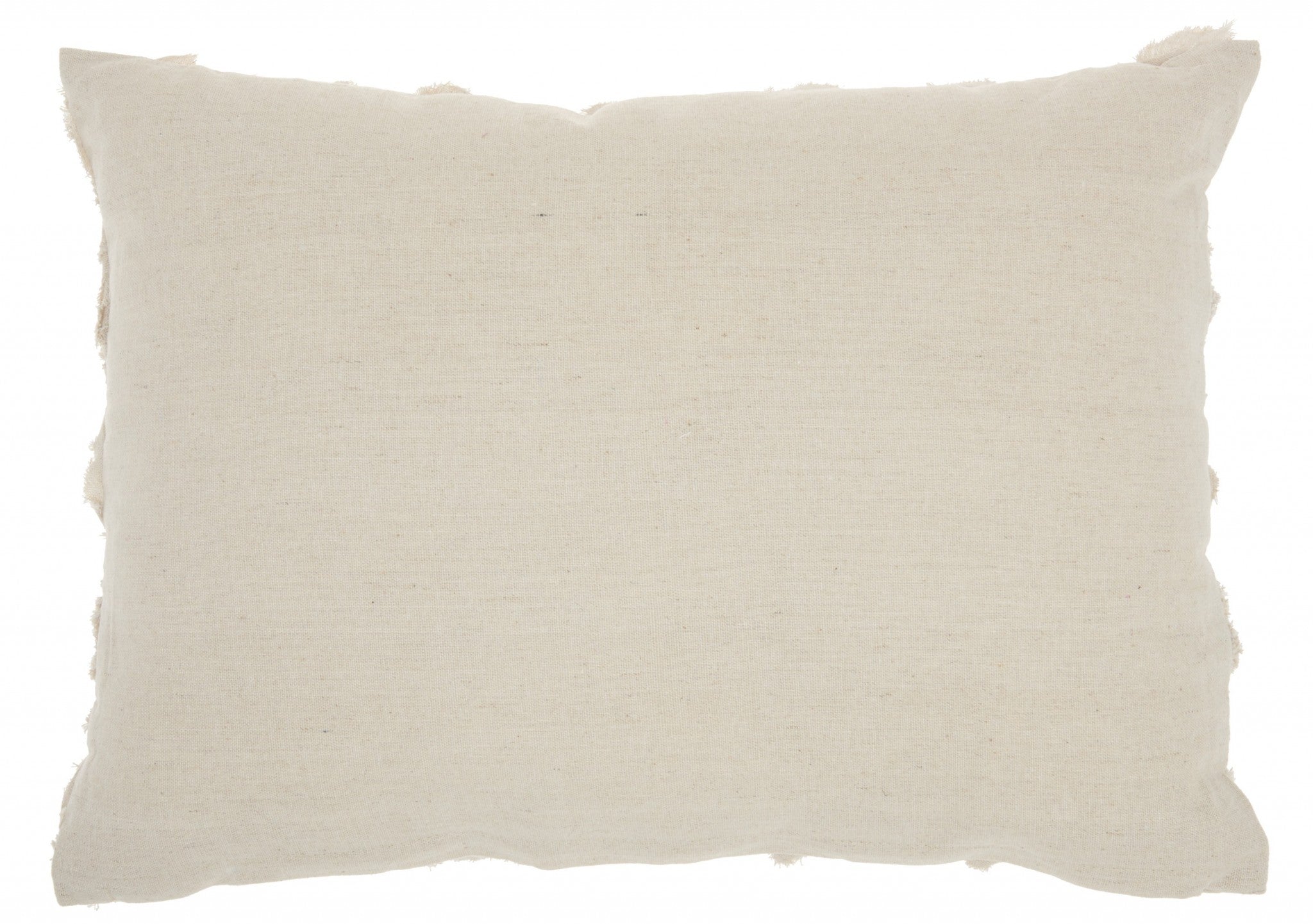This Petite Off-White Embossed Rose Lumbar Pillow is the perfect combination of minimal design and comfort and will elevate the look of your seating spaces. This pillow has a narrow rectangular shape and is covered in a smooth off-white colored fabric. There is a hidden zip closure at the back which gives a very seamless look to this pillow. On top of the off-white background, loose rose shapes cover the whole front side of the pillow. These rose shapes have an embossed feel to them and are made from the same fabric in a circular weave. You can use this throw pillow anywhere in your home, on your bed, on your couch, and even on your favorite chair. 5" H x 14" W x 20" D