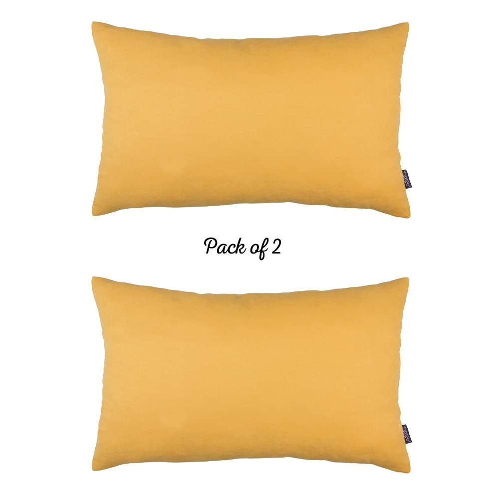 Simple, sophisticated, and stylish in a compact design, this Set of 2 Yellow Modern Lumbar Throw Pillows features a clean-lined design in a solid color palette to complement any bold or bright background. This vibrant yellow-toned pillow will not only be an eye-catching accent but also a comfortable piece to add to your bedroom, living room, or sitting space. Crafted in Turkey from 100% polyester fabric that adheres to OEKO-TEX Standard 100 certification to ensure durability, product quality, and safety. The seamless feel comes from the all-around hidden zipper closure while the soft cotton insert adds to the fluffy look and maximum comfort. Give your contemporary home an element of class and comfort with this pair of throw pillows on the bed, sofa, or couch. 12” x 20” x 1”. Set of 2.
