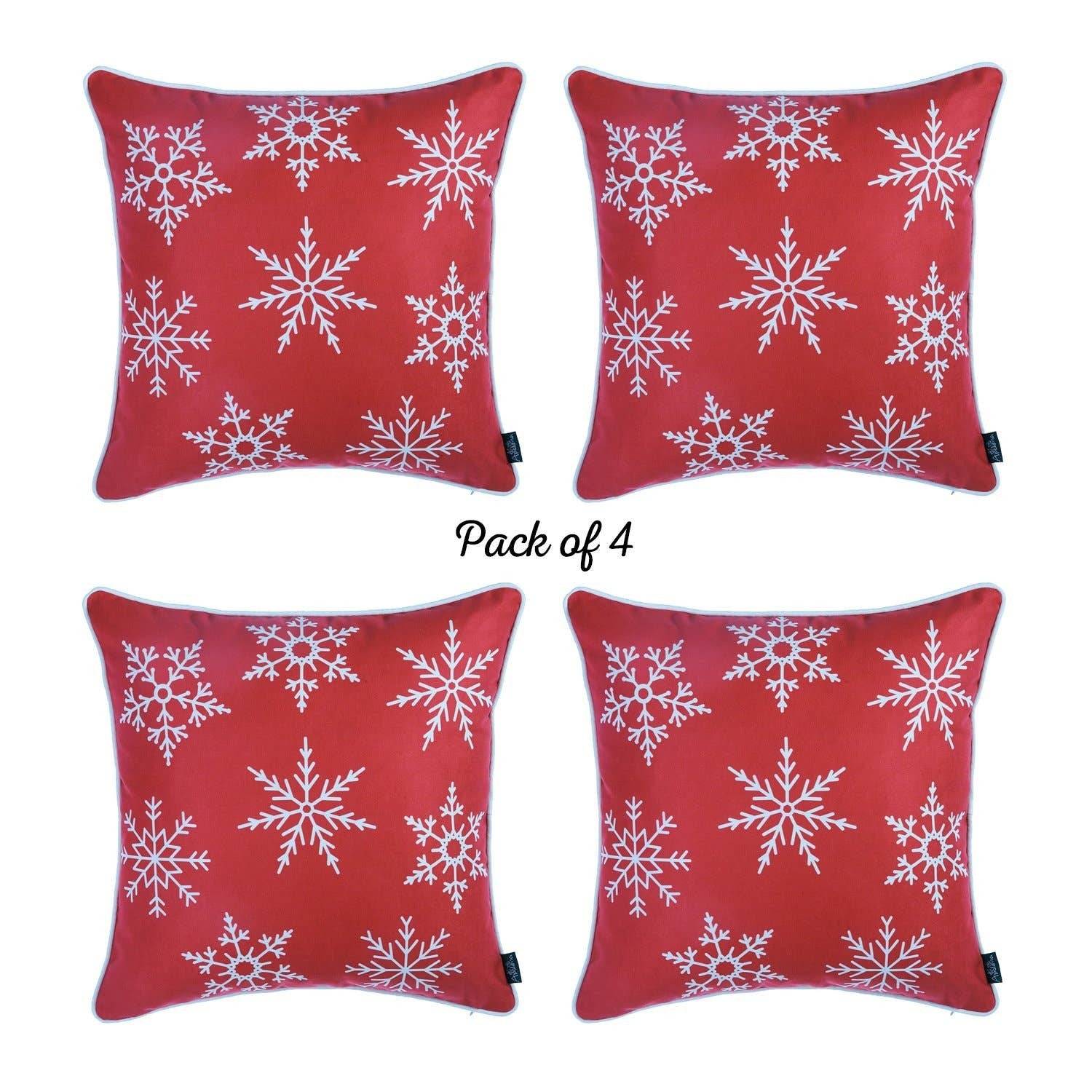 Upgrade your home with this elegantly designed Set of 4 Red and White Snowflakes Throw Pillows, which will be an ideal accent to add a luxurious tone to your decor. The apple red base is accented by white snowflakes motif for a subtle contrast that's sure to allure the gaze, while the white piped edging gives this piece a definitive look. The all-around hidden zipper closure and soft poly filing inside add to a seamless finish and fluffy appearance. Crafted with care by Turkish artisans, this decorative pillow features a premium polyester material, which makes this piece hard-wearing and easy to clean. You can be confident in the product's quality because it is OEKO-TEX Standard 100 certified. This charming pillow set will give your living space a festive vibe and earn you loads of compliments from the guests. 18” x 18” x 1” each. Set of 4.