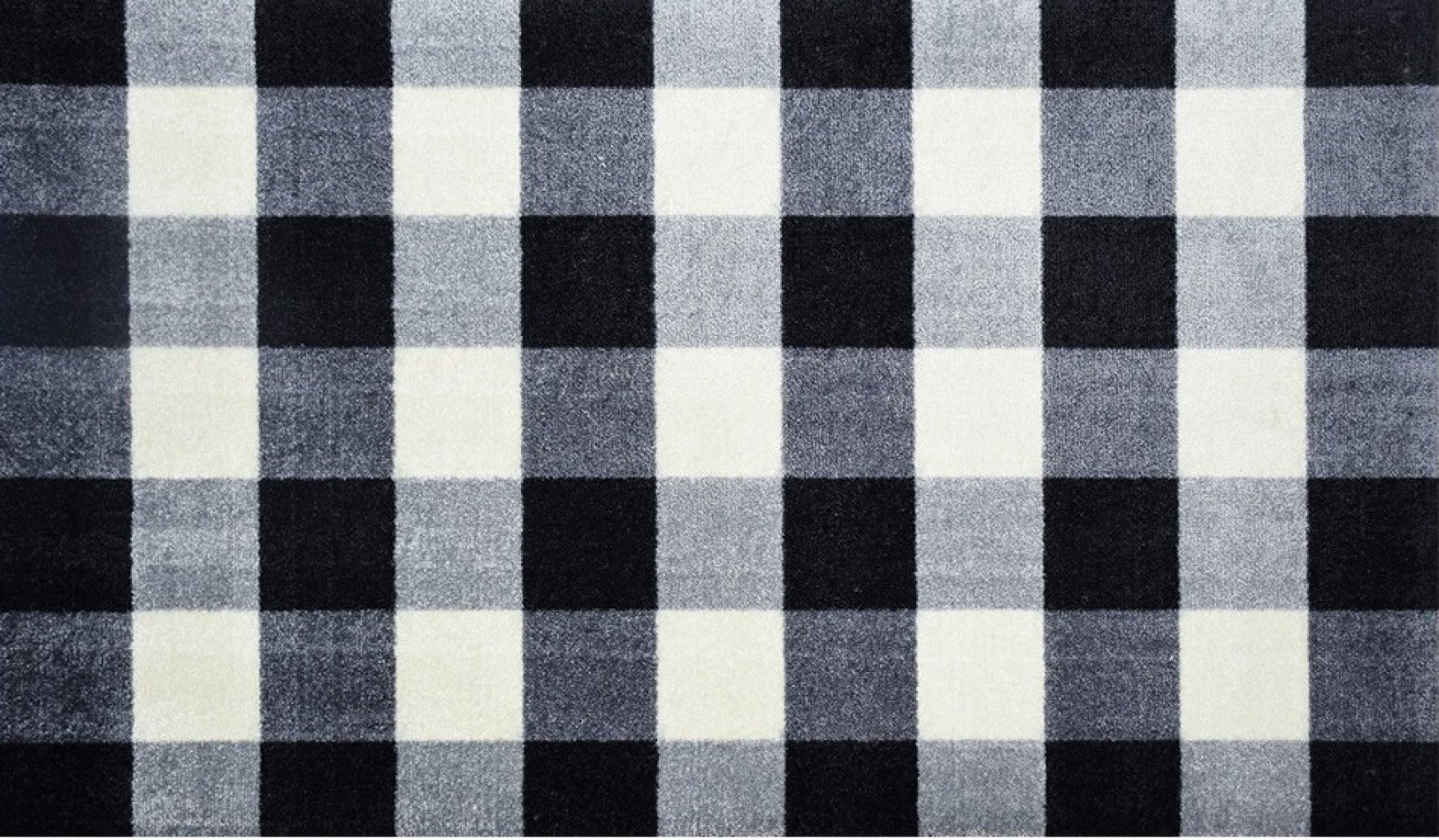 This low profile Black and White Buffalo Check Washable Floor Mat is a game changer. A fade resistant A fade resistant buffalo check design in timelessly trendy black and white provides a fashion forward look for a mat that is super sturdy and can easily be thrown into the washer and dryer to clean. The premier formula rubber backing used makes this nylon rug slip resistantr with no need for an additional pad, and the backing will hold up during the wash and dry! The low profile means it easily fits under doors. Combine fashion and style with real life functionality with this great area rug/door mat. 27.5" x 47" x .3"