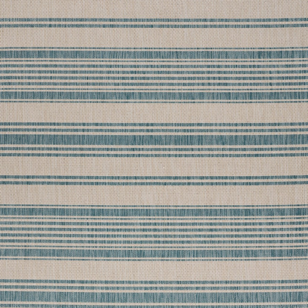 Transform the aesthetics of your living space in just the way you want with this Teal Uneven Stripe Indoor Outdoor Area Rug. Made to blend in amidst any contemporary or traditional setting, the two-toned stripes in teal and beige is easy on the eyes. With a blend of polypropylene and polyester in the making, this Turkish-made rug ensures durability to serve you for years and retain its pristine look without losing its shape and shine. You will experience a smooth underfoot due to the low pile construction that adds to the surface interest for a cozy and inviting feel. Be it your kitchen, dining area, deck, or patio, this cool-toned area rug will add a classic edge to the floor. 90” x 113” x 0.35”