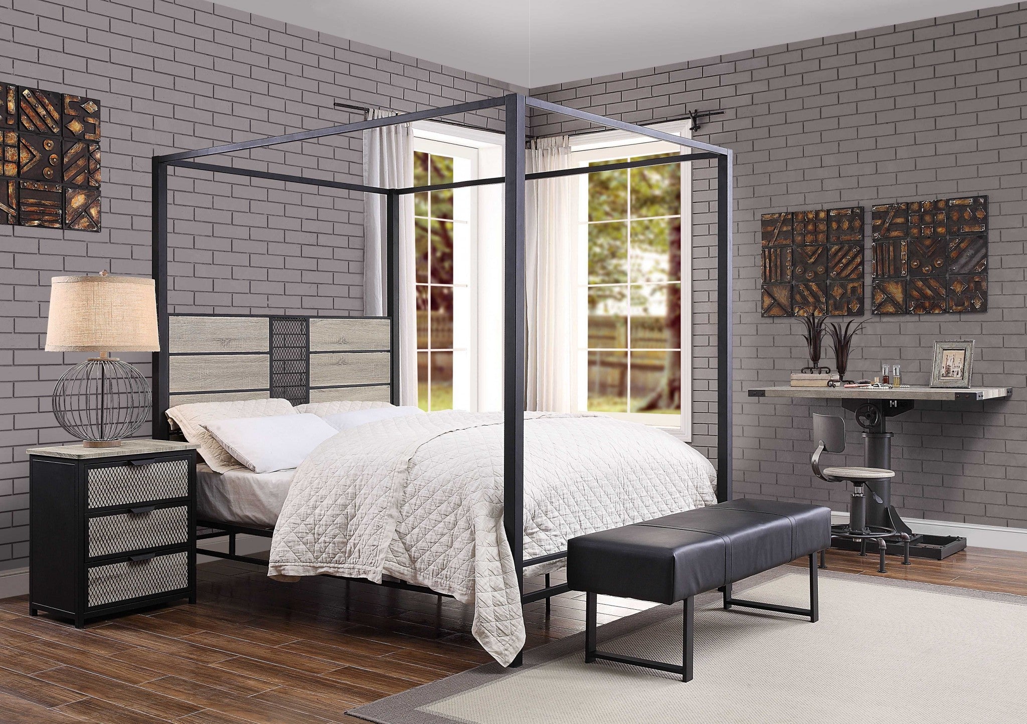 62' X 83' X 78' Natural Sandy Gray Metal Wood Veneer (Paper) Queen Bed