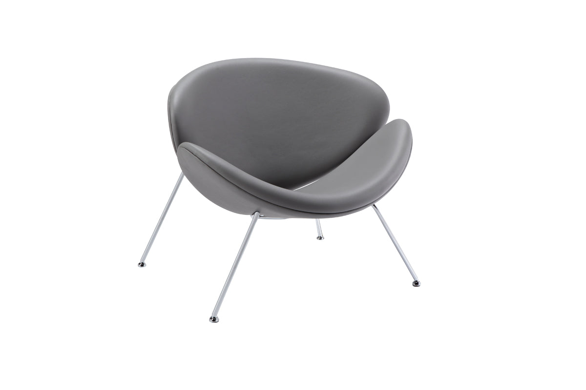 Introduce the ideal blend of aesthetic appearance and comfort to your home with this accent chair. Its exquisite style and excellent craftsmanship will breathe a bit of fresh air into your home, and the obvious attention to details will turn the heads of your guests. This accent chair is an excellently crafted piece, which has a grey leatherette upholstery and steel legs. If theres one thing you neednt worry about, its comfort. This accent chair is certain to blend in with any interior design. As for measurements, theyre 28 for height, 31 for width, and 34 for depth, and it weighs 79 .. This accent chair will give the ambiance of your home a breath of fresh air.