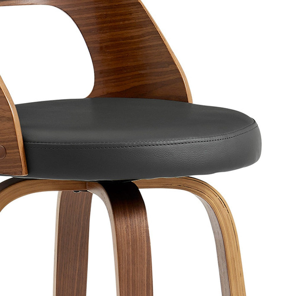 30" Retro Mod Grey Faux Leather and Walnut Swivel Counter Stool
