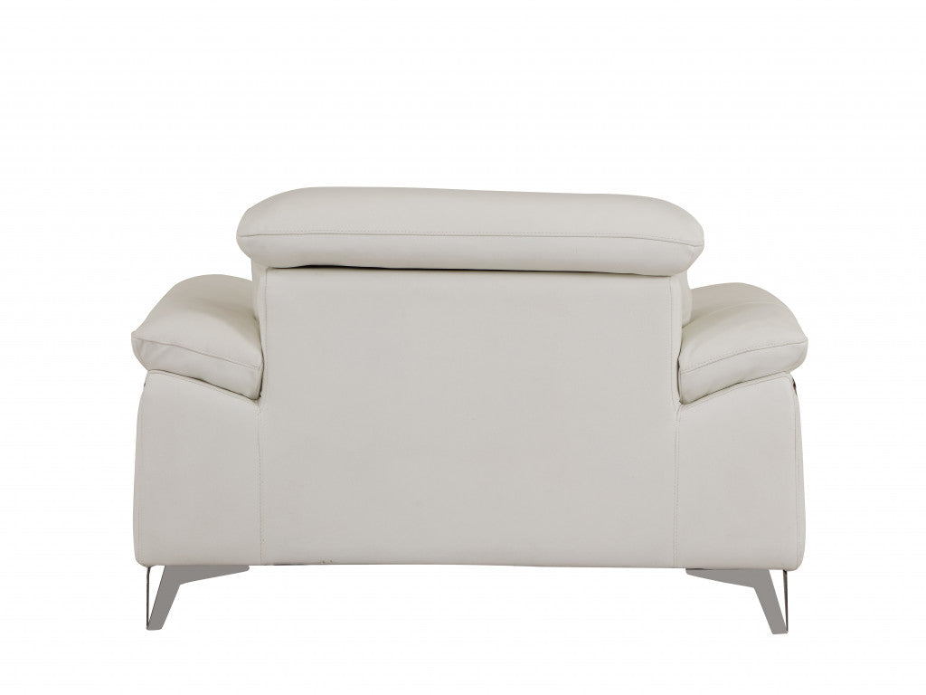 Provide your living room with the modern look and feel, but with exceptional practicality as an added bonus with this skillfully crafted chair. This chair is a hard-wearing piece and has a comfortable white buttery leather upholstery. It will definitely captivate your friends and guests. It truly mixes splendid rest with sturdiness perfectly. To complete this stunning appearance, it shows off a fabulous style spot-on for the modern home. As for measurements, theyre 31 for height, 51 for width, and 42 for depth, and it weighs 99 . When you need to relax and rest after a long day, this chair is the best you can find. It will fit in excellently with any interior, and would be a marvelous decoration for your home.