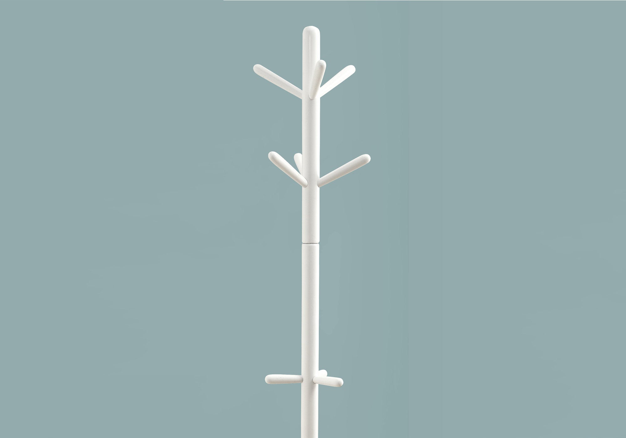 Organize your home with this contemporary solid wood coat rack. A beautiful fresh white finish and a sturdy pedestal base bring plenty of stylish storage into your living space. The simplicity of the design makes it easy to create functionality in your en
