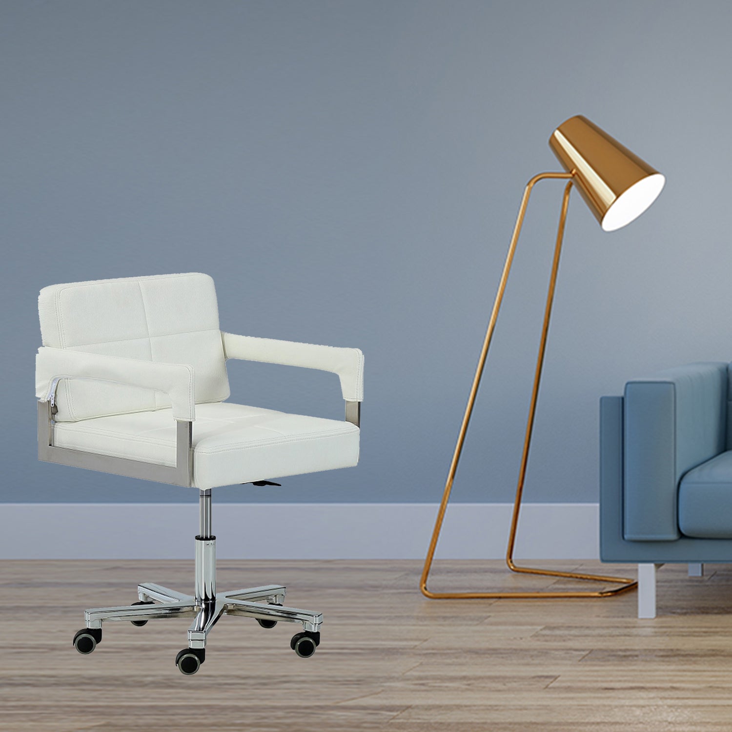 Should you wish for a piece that will enable you to relax and unwind, while looking stunning and embroidering your space, this is the ideal chair for you. The design of this office chair is sure to disrupt monotony, and the excellence of its craftsmanship will add taste and detail to your office or living room. This chair is a high quality piece, which has a white leather upholstery with a steel base. Its perfect for those who want to bring a bit of life into the ambiance of their place. As for measurements, theyre 29 for height, 22 for width, and 20 for depth, and it weighs 32.1 . It would be ideal for your living room, or office. You can match this chair with other decorations to get the best possible look for your space.