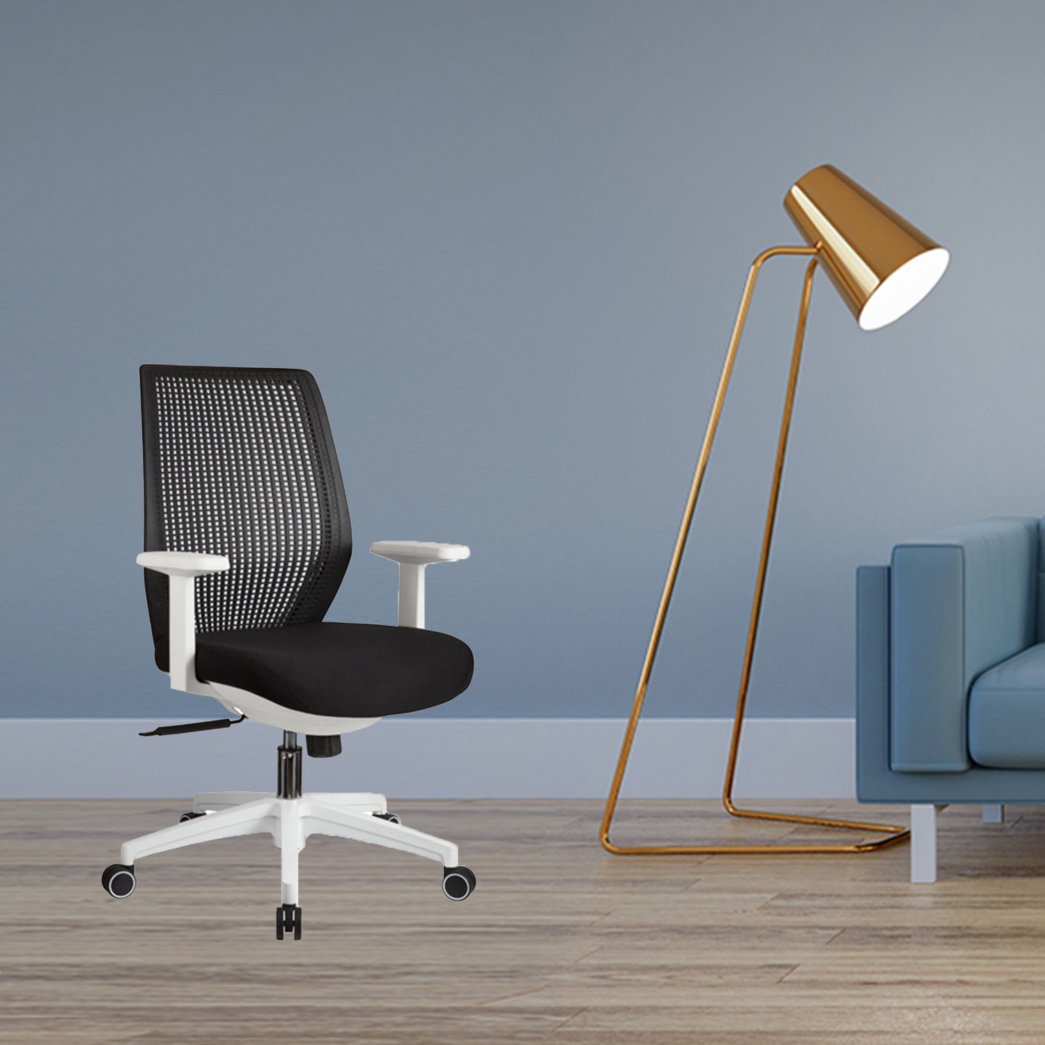Get yourself something that will be both practical and beautify your space with this charming chair. The design of this office chair is certain to break monotony and uniformity, and the obvious quality of its craftsmanship will add taste and detail to your office or living room. This chair is a high quality piece, which has a black leather upholstery with a white plastic base. Its perfect for those who want to bring a bit of life into the ambiance of their place. As for measurements, theyre 41 for height, 24 for width, and 23 for depth, and it weighs 32.9 . It would be ideal for your living room, or office. You can match this chair with other decorations to get the best possible look for your space. It requires assembly. Minimum Seat Height: 18" Maximum seat height 21"