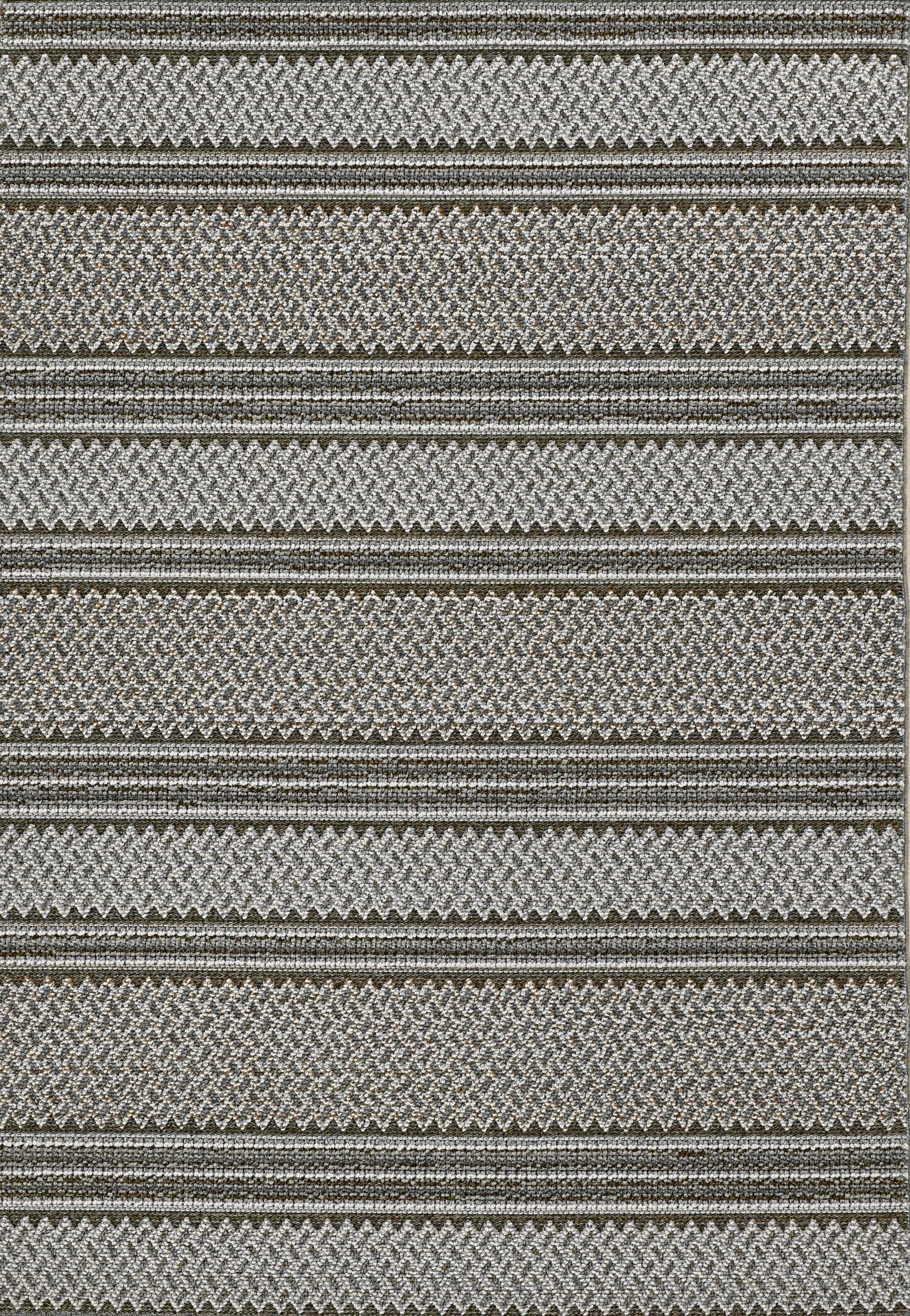 7'x9' Grey Machine Woven UV Treated Awning Stripes Indoor Outdoor Area Rug