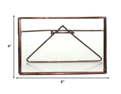 Make your photos really stand out with this Bronze Metal Horizontal Glass Frame. The frame of this piece is made from solid metal and has a bronze colored finish on it. At the back of this metal frame, there is one metal rod to which there is a triangular shape attached to help the frame stand up-right. There are small metallic screw details at the back and sides of this frame in the same bronze color. he frame open with a traditional sliding lock. In the middle of the frame there is a pane of glass that will help show off your photos in the most perfect way. You can use this frame anywhere in your home owing to its minimal design. Keep your memories ever present and stylish with this horizontal frame. 4" H x 0.25" W x 6" D