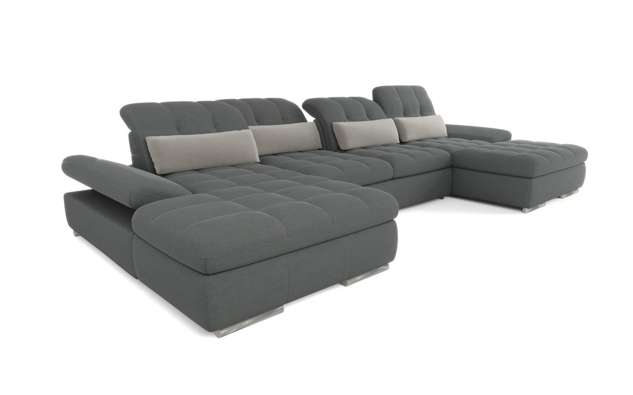 The Mod Dark Gray Three Piece Right Sectional with Storage and Sleeper is the perfect solution for your contemporary everyday life. This solid color sectional is made of the strongest, highest performance microfiber around, thus making it ideal for high traffic areas that get lots of use. Spill and stain resistance means it is a great option for areas with kids and or pets. Superior construction makes this sofa set not only super durable but extremely comfortable as well. This fabulous sectional includes 4 bolster low back support pillows in a coordinating lighter color to create a perfect designer look. The chaise lounge on the right makes this sofa is great for lounging or napping. The modular pieces can even be moved around to create a queen size bed area for true sleeping. The low arm rests on both sides, and the chaise component open for lots of storage which is a great place to stash games, supplies, blankets and extra pillows when not in use. This special sectional also includes movable seat backs which allow you to adjust the depth which is a unique and great feature to be able to adjust for shorter or taller users. Raised off the floor with sturdy stainless legs, this right side long sectional features wide arms for comfort and convenience and has an air of modern design but is classic and transitional enough to fit in most any decor. 31.5" x 156" x 75"