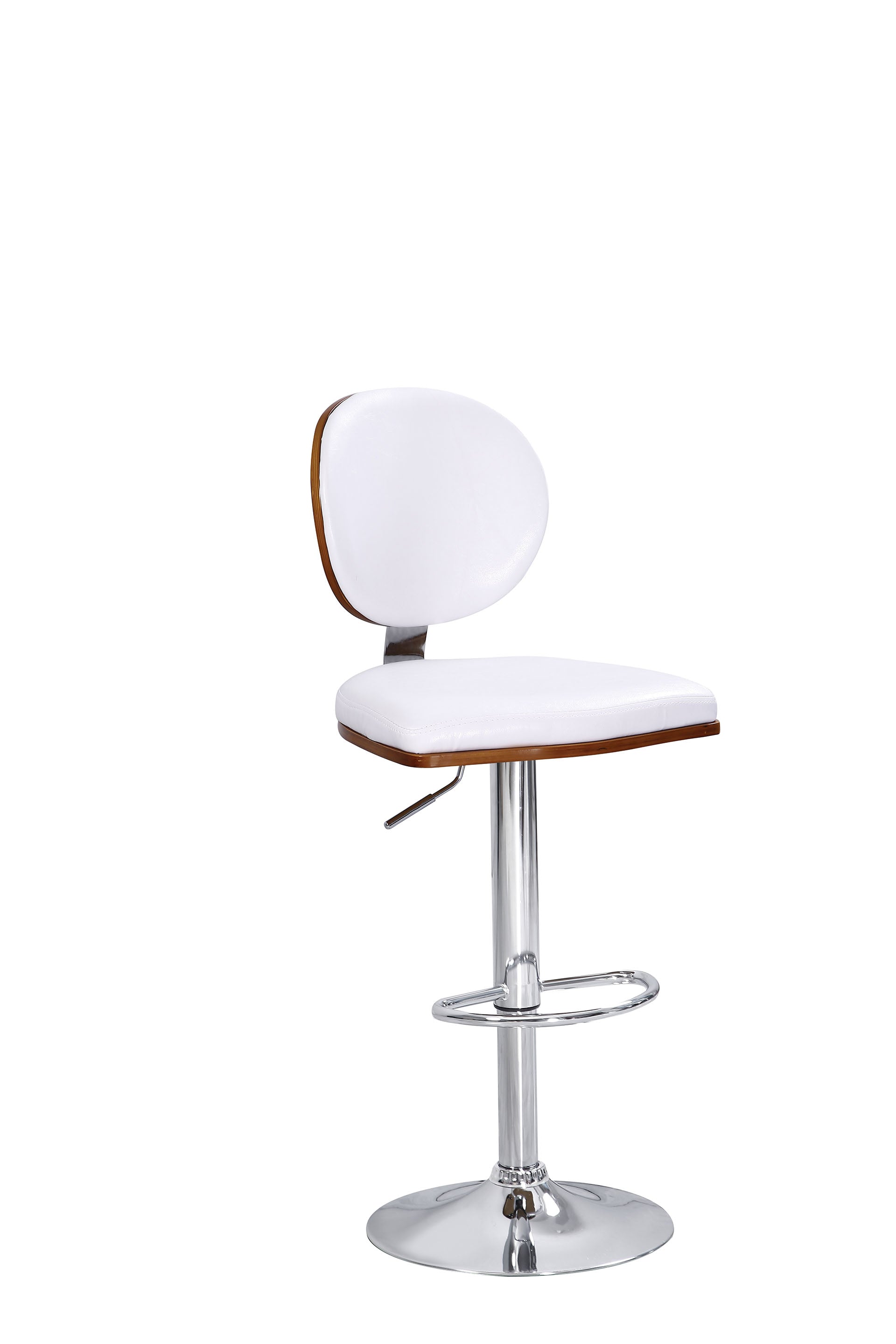 The swivel adjustable stool is the perfect height for anyone in your home, featuring a 360-degree swivel seat and adjustable height, everyone is able to sit comfortably. This seat is upholstered in a white faux leather and the base has a contemporary chrome finish that will show off your style. The oval back and padded seat gives this stool an original design that is sure to complete your already existing kitchen or dining room nicely. Some Assembly Required.