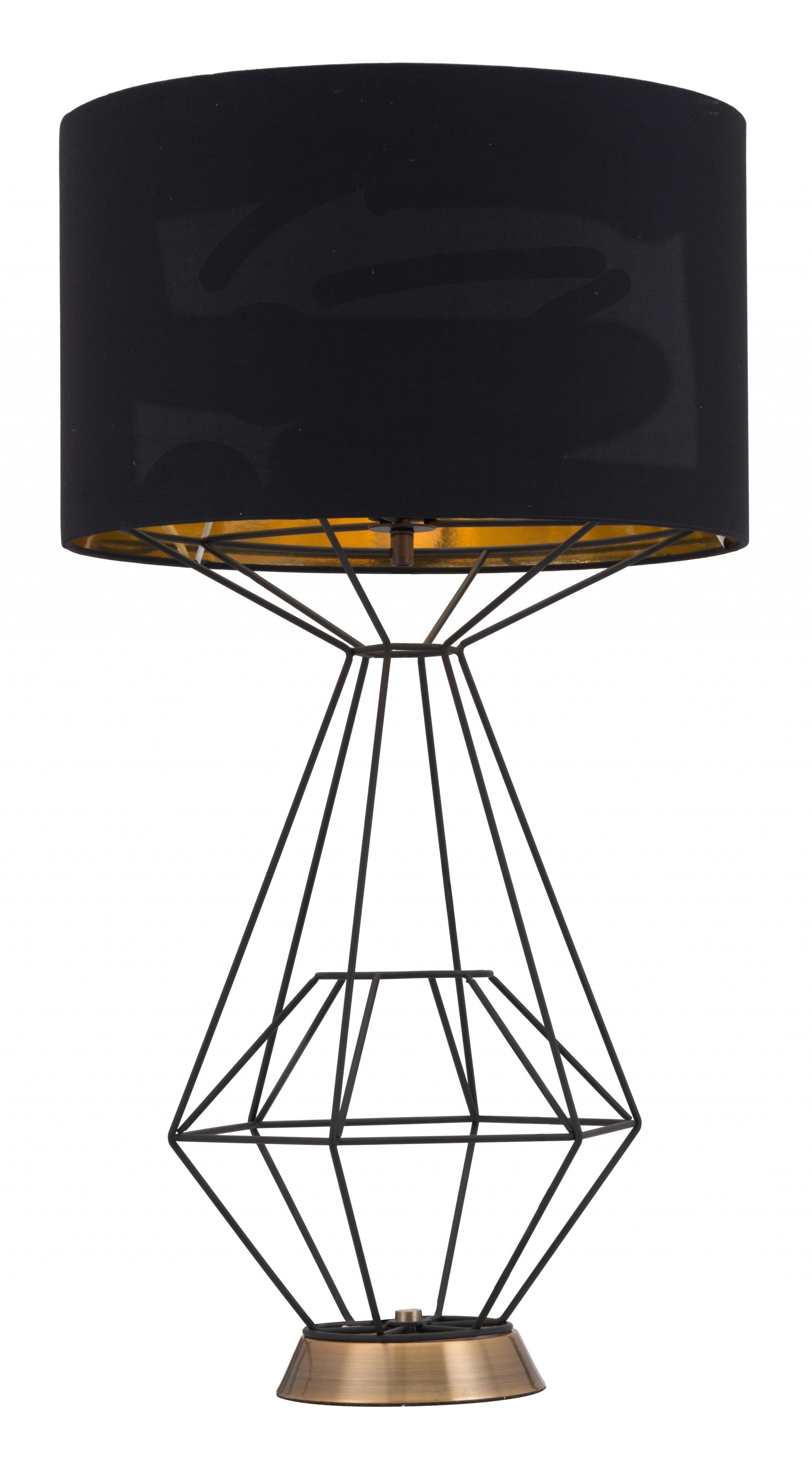This Black Diamond Table or Desk Lamp is an attractive piece of light and art. It’s geometric design gives it a very open airy feel that will work magnificently in both modern and vintage settings. This lamp sits upon a golden base with a combination of matte black angular wire body and a black drum style shade that is finished with a shiny gold liner for a delightful visual contrast. 71.1” H x 38.1” W x 38.1” D