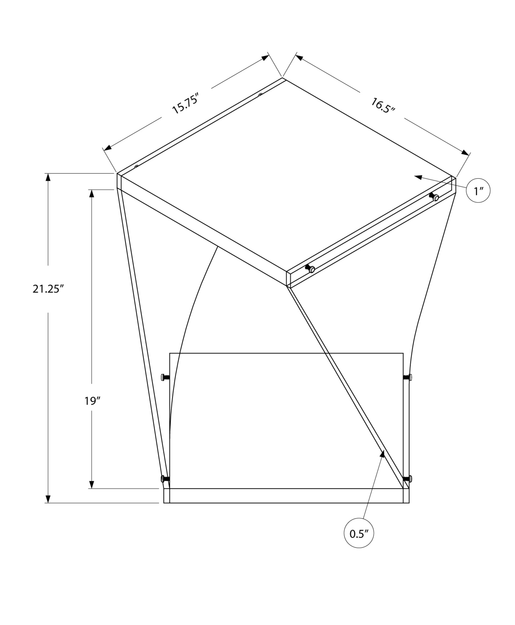 Should you desire a great companion for your sofa, or love seat, you've found one. This accent table has a classy and smooth design certain to turn some heads as well. It's truly exceptional and displays suave and down-to-earth beauty, which will give your home a warm feel. The appealing design of this accent table will certainly be a delightful decoration to your interior too. It's excellently crafted from MDF and clear acrylic glass. It's the best place for some family pictures and it can even leave your guests marveling at your magnificent flowers. As for measurements, they are 21.25' for height, 15.75' for width, and 16.5' for depth, and it weighs 19 . This accent table can be the center piece around which you can design the ideal look.