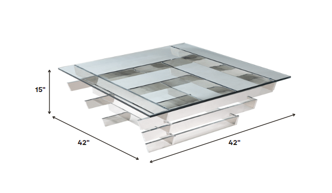 Revitalize your home with this fabulous coffee table, which will provide you with a room that's as elegant as a piece of art. It's an outstanding piece, with a clear glass and stainless steel style that will enhance your space and a clear color that will diversify your rooms. This coffee table is a high quality piece, expertly made of high grade clear glass and stainless steel. You want your coffee tables to last, and that?s exactly what you get with this one. It's a part of the Dole collection, and its unique visual and design will give an appealing modern feel to the atmosphere of your home. As for measurements, they are 15? for height, 42? for width, and 42? for depth, and it weighs 96. Incorporate it into your interior to achieve the perfect look.