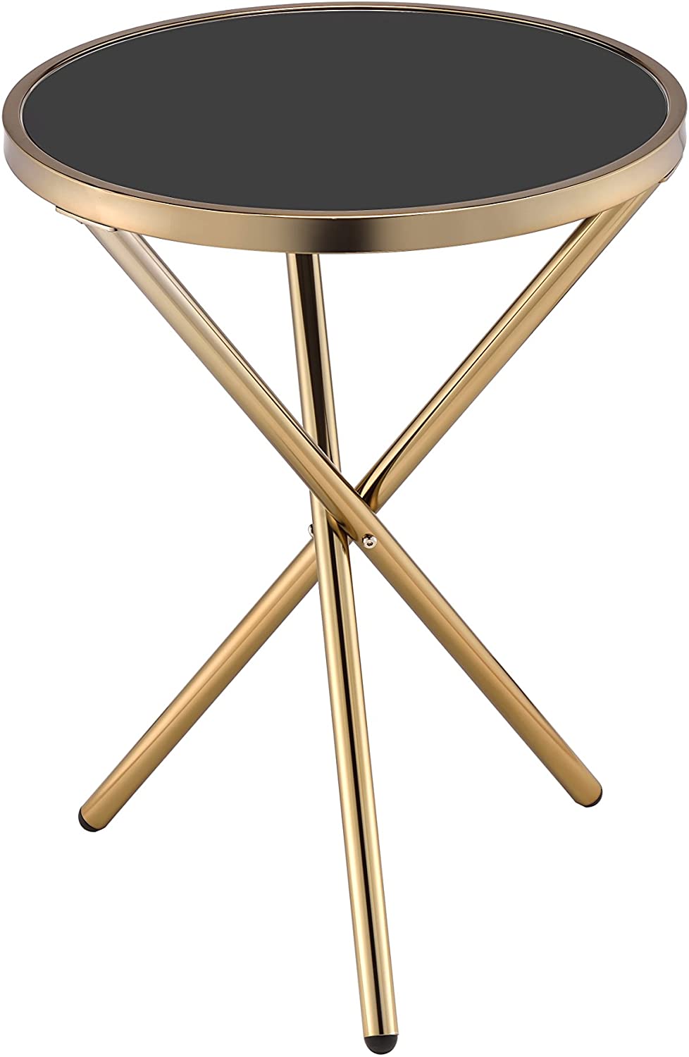 Calling all glamorous interiors, our Black and Gold Glass Top Side Table is just the thing for you. Thanks to it’s simple, yet striking design you can easily add both style and funtionality to your living room or bedroom. Featuring a black, round glass top, resting on an eye-catching gold tripod leg design, this table is a must have piece if you're looking for maximum impct with minimal effort. 25" X 19" X 19"