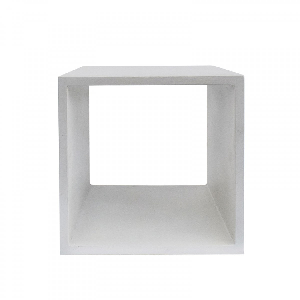Add something simple and unique to your home with this Minimalist White Concrete Open Cube End or Side Table. The clean lines and unique minimalist design make this table a great option for an end table, accent table, side table or even nightstand. Pair multiples together or stack to create your own personalized bookcase. is a piece that you can use in multiple ways, by itself as a side or end table, as a nightstand, or you can stack multiple pieces to form a bookshelf. This table is made from reinforced solid concrete and has a simple open-air cube structure. Unique and versatile this piece will easily blend with several different design styles. 16” x 16” x 16”
