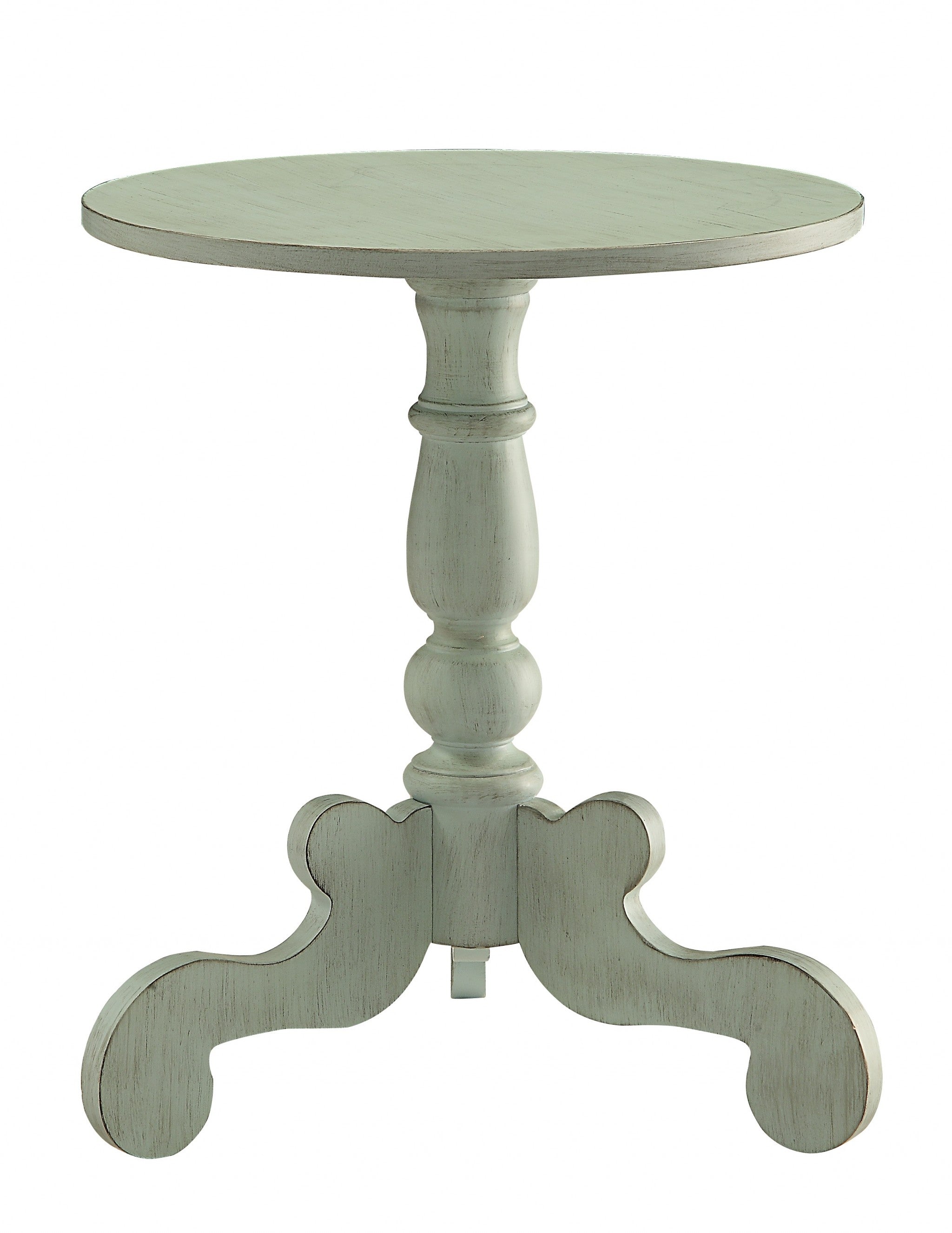 This Ornate Sage Green Wooden Side Table will add a special touch to any interior. Its pastel green color provides a unique point of difference but would compliment most existing color schemes well. Featuring ornately carved legs and an intricate table center design, this piece would fit beautifully in most living spaces and even bedrooms. 24" x 20" x 20"