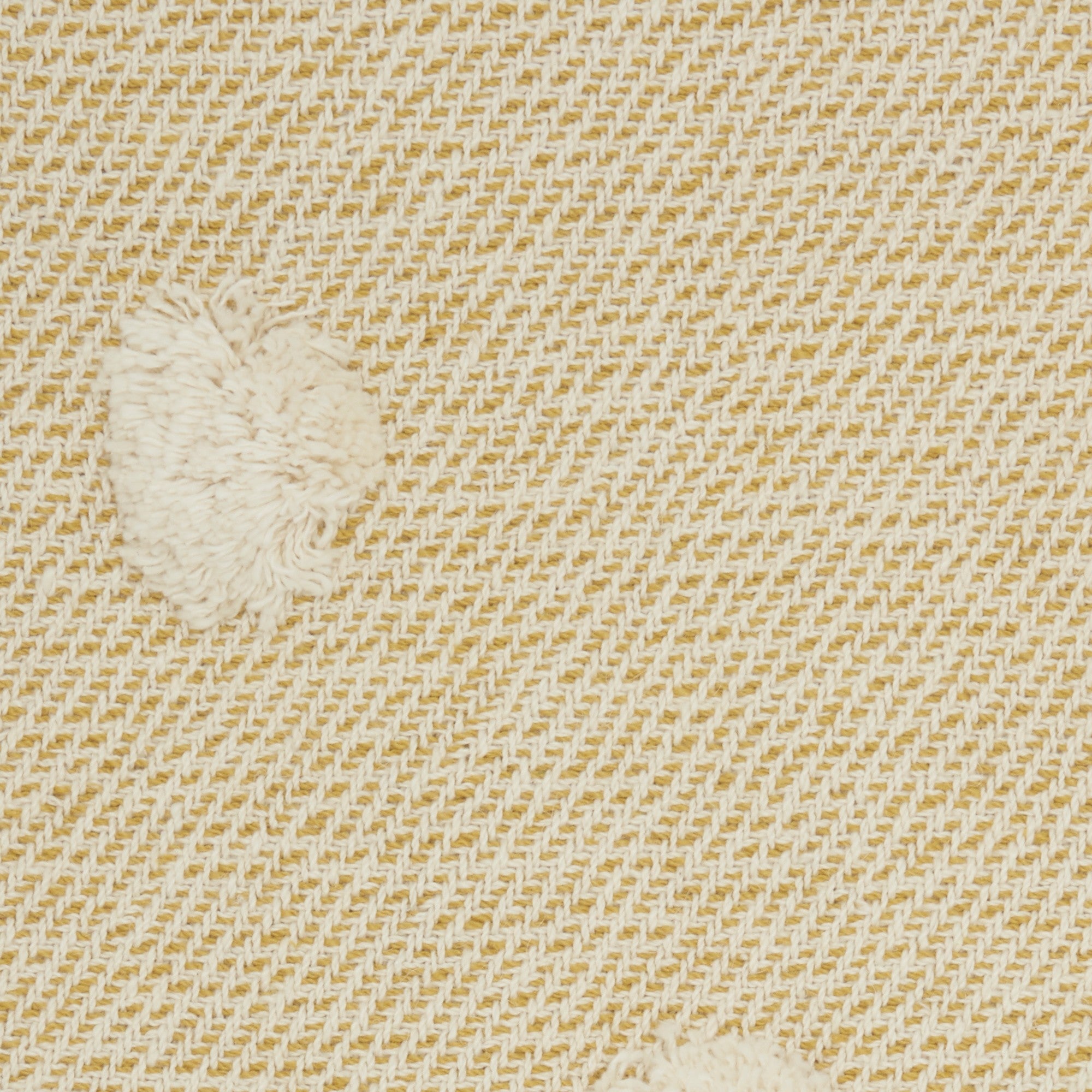 A decorator's dream, this gorgeous Golden Wheat and Ivory Big Pom Cotton Throw Blanket will add designer coziness to your space in an instant. This handmade incredibly soft cotton blanket has a delightful weave that incorporates ivory and color for just the right design. There are large circular 3D super soft Ivory cotton poms sewn on that give this throw a unique and high end touch. The neutral coloration makes this accent easy to style and place in most any interior. Warm and soft to be used as a blanket or decorative accent drapped over your favorite chair, couch, or bed. 0.5" x 50" x 60"
