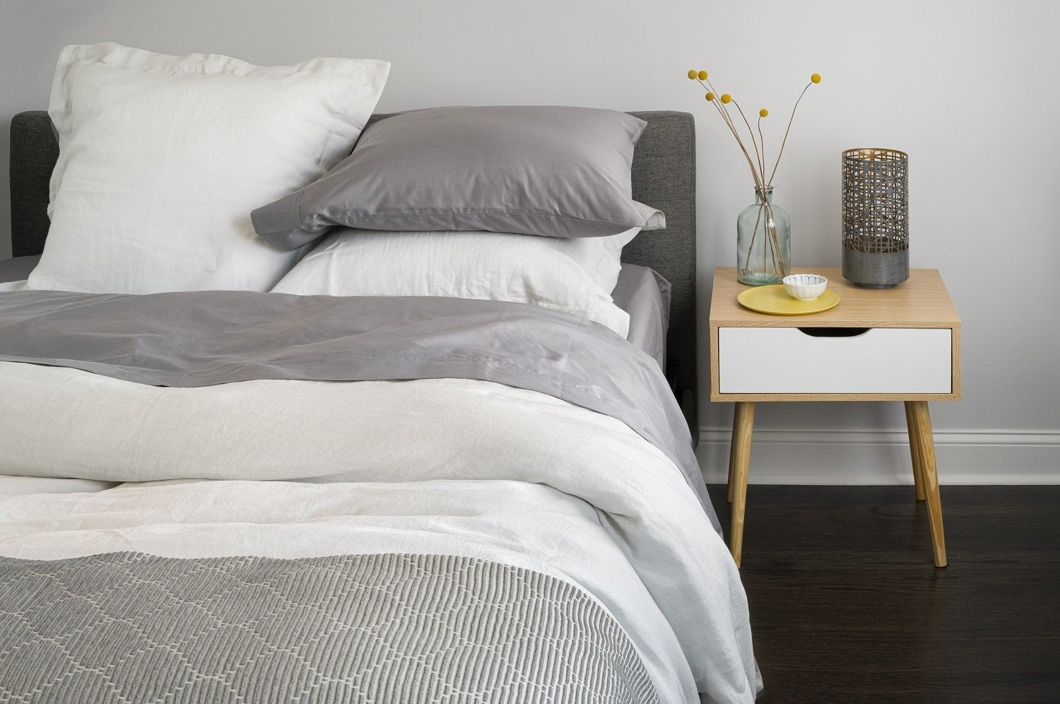 Enjoy the finer things in all that is comfort and cozy with this Lux Tex Dark Gray Organic Cotton Knit Throw Blanket. Add a contemporary vibe to your space with this must-have staple blanket that is perfect to throw over yourself while you are snuggled up on your favorite chair, the sofa or on your bed. Woven of luxuriously soft 100% organic cotton fibers, this lightly textured throw is stonewashed for the ultimate in softness. The dark grey color is perfect combination with modern and simplistic quatrafoil stitched design, making it an easy item to effortlessly style in any room of your house! 1" x 50" x 70"