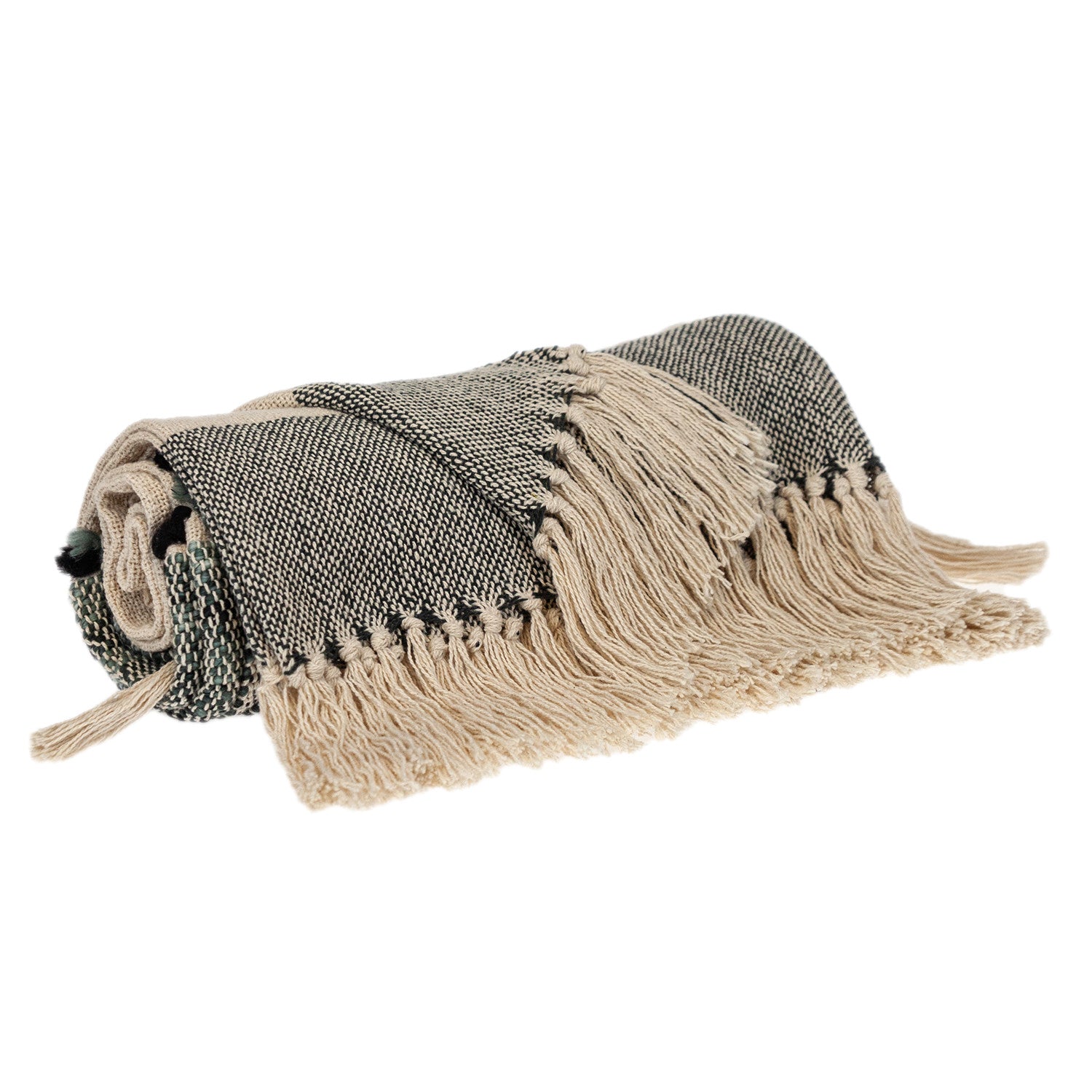 Multicolored Textured Boho Woven Handloom Throw with Tassels