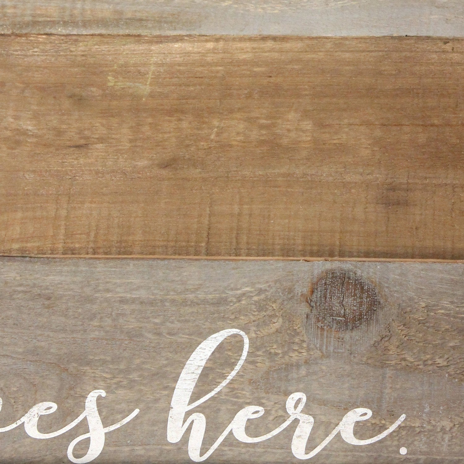 This updated yet rustic serving tray emblazoned with the beautiful and heartfelt sentiment "Love Lives Here" serves as a daily reminder of your fondness and positivity. The distressed and two tone wood finish gives the design a rustic quality, while the metal side handles add a contemporary touch. The white printed phrase "Love Lives Here" and is sure to let family and guests know you care. Use it as a decorative accent on the counter, a hutch, coffee table or ottoman - the possibilites are endless. This stylish tray measures 18" L x 12" W x 1.75" H. Intended for decorative use only.