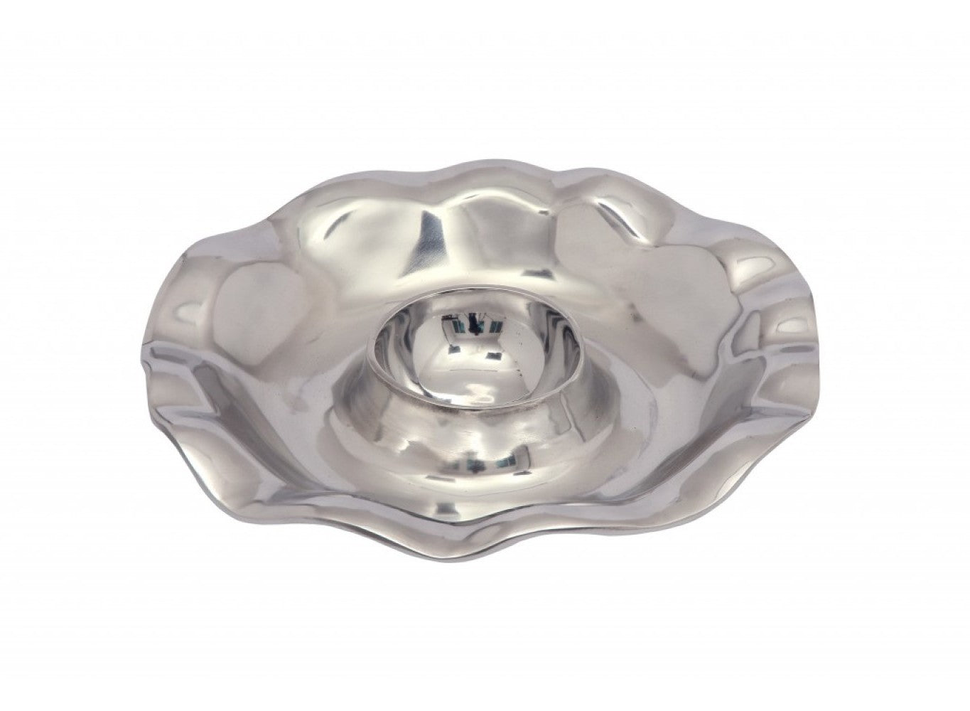 Shiny Silver Wavy Chip and Dip Serving Bowl