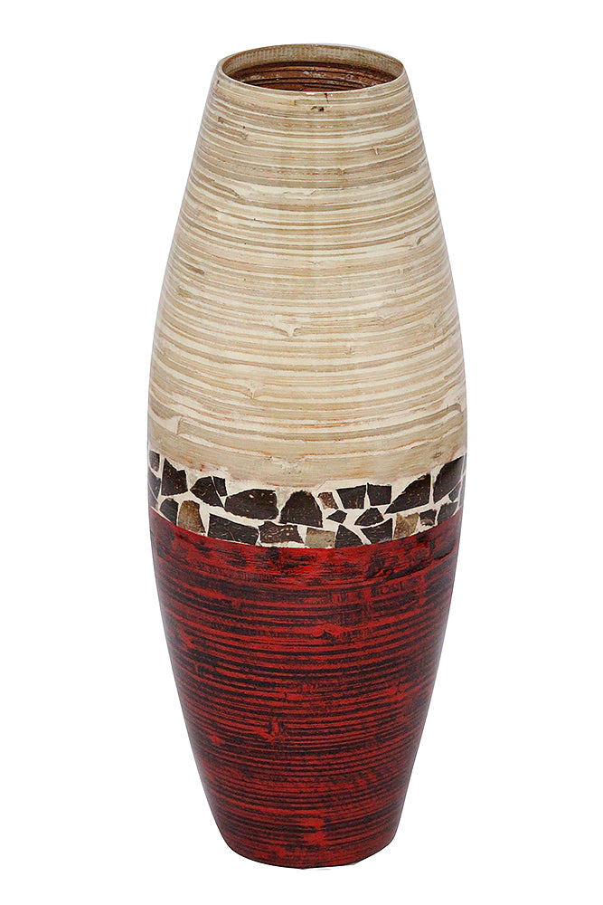 9.45" X 9.45" X 24" Natural Bamboo And Metallic Red with Coconut Shell Bamboo Spun Bamboo Vase
