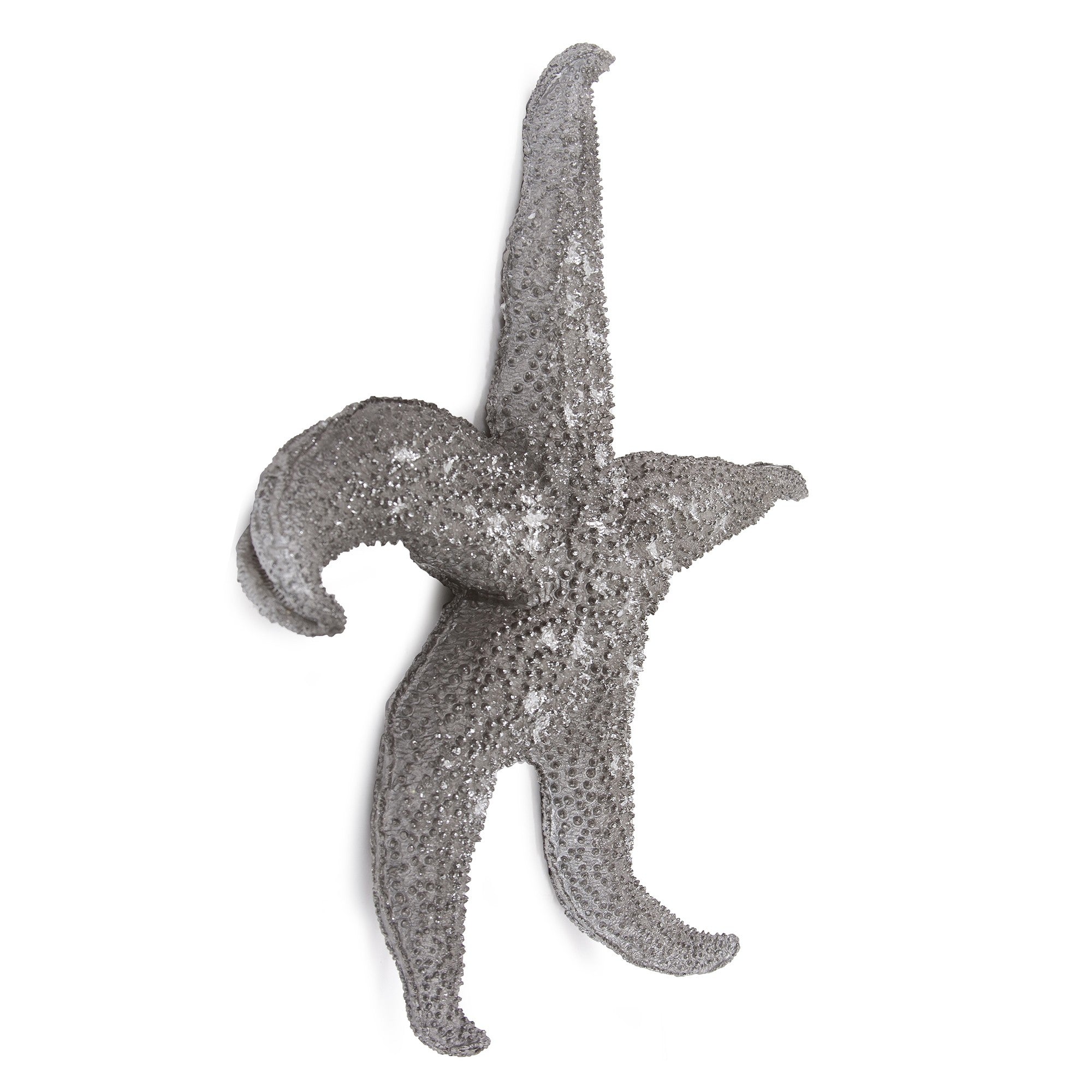 Bring the splendor of the sea into your space with the mesmerizing Silver Pewter Textured Starfish Wall Art. With its deep distressed pewter silver finish, this resin starfish it will add an interesting and textural beachy tropical tone and style to your space. Hang one or more in your entryway, living room or office to add a coastal touch to the room. 19" x 19" x 2"