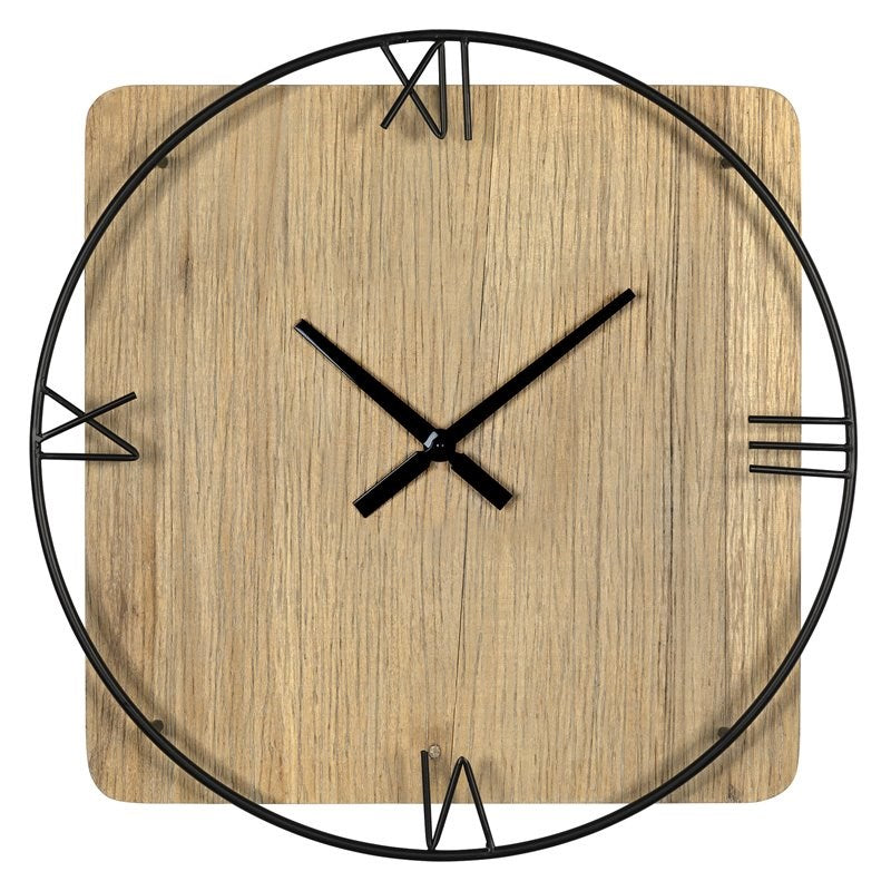 Minimally-inclined decorative elements add a touch of simple sophistication to any location within your home. With this in mind, the Minimalist Rustic Circle Square Wood and Metal Wall Clock will give any wall an industrial-themed upgrade. The round metal frame with a Roman Numeral clock face tells the time with its glossy black hands. The square-shaped wooden background beautifully accentuates the metal components with its grain and distressed finish. Made of 60% MDF and 40% metal, this wall clock will easily add a touch of casual elegance to any space. 26.77" H x 26.77" W x 3" D.