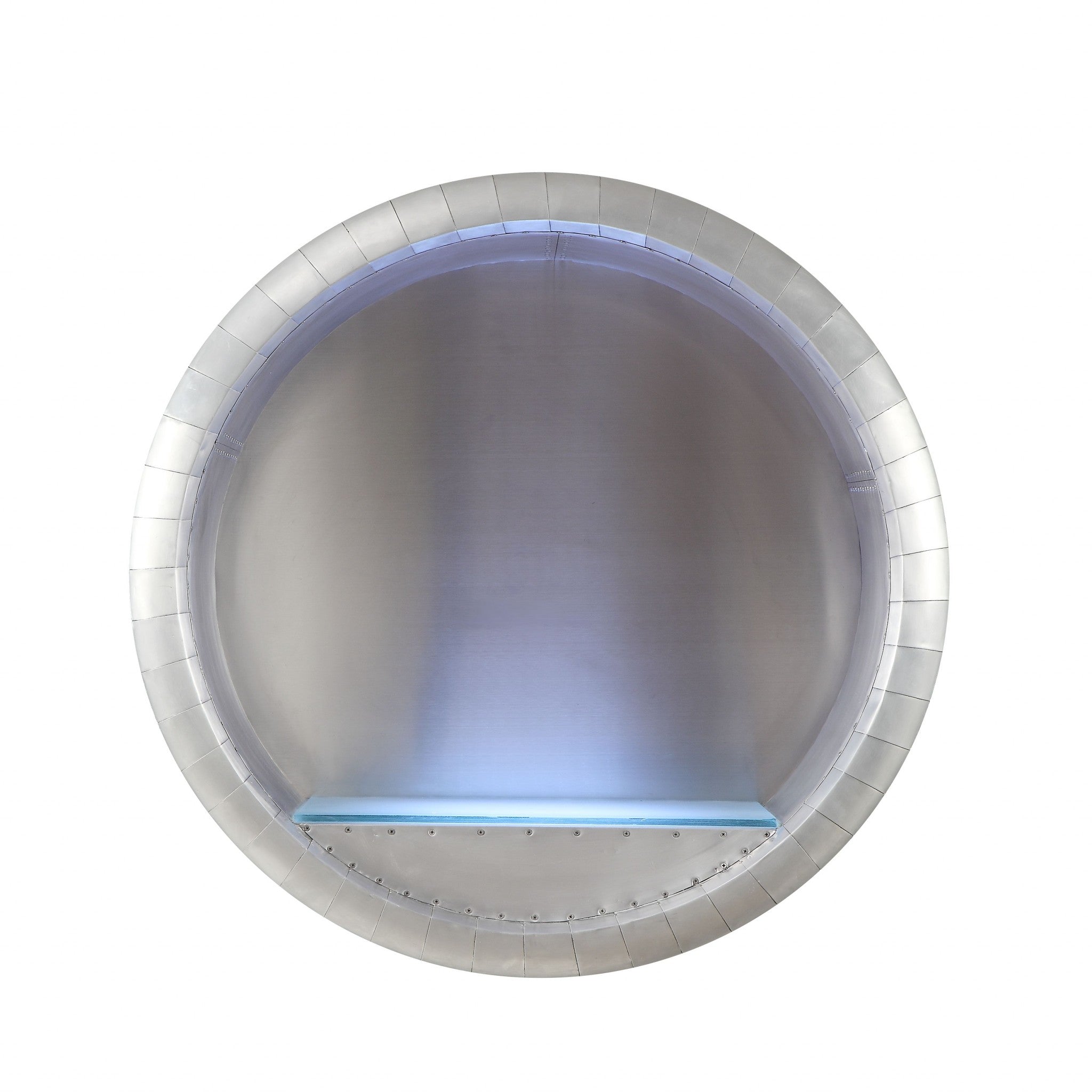 Transform the visual flair of your room with this industrial style aluminum wall rack. Our jet engine like rack carries a world-class construction meant to brighten the interior of every home setting. It features aluminum patchwork with a vintage fascinating lines in a clean geometric design. The most interesting part of this masterpiece is the led lighting that adds cool ambience in the room. It also comes with a frosted tempered glass shelf for displaying ornamental pieces.