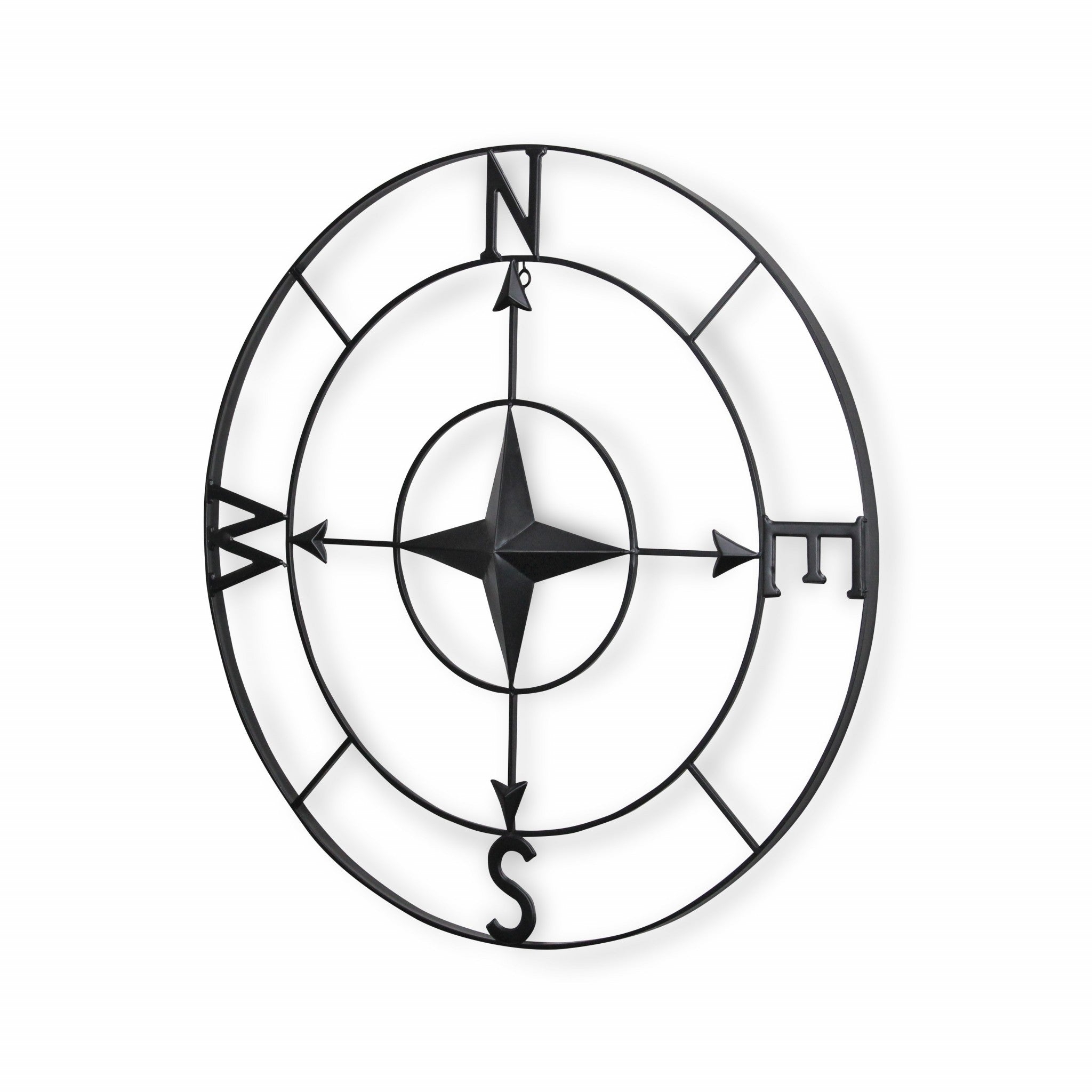 Pay homage to the nautical design styles with this Black Metal Compass Shaped Wall Decor. This piece is made of solid metal and is colored to semi-matte black finish. There are two outer circles between which there are the 'N, S, E, W' letters. In the middle there is a four corner star which is surrounded by a smaller circle out of which there are four arrows coming out. This piece can be a great one for the study room, the library, or even your living room. 30" H x 30" W x 2" D