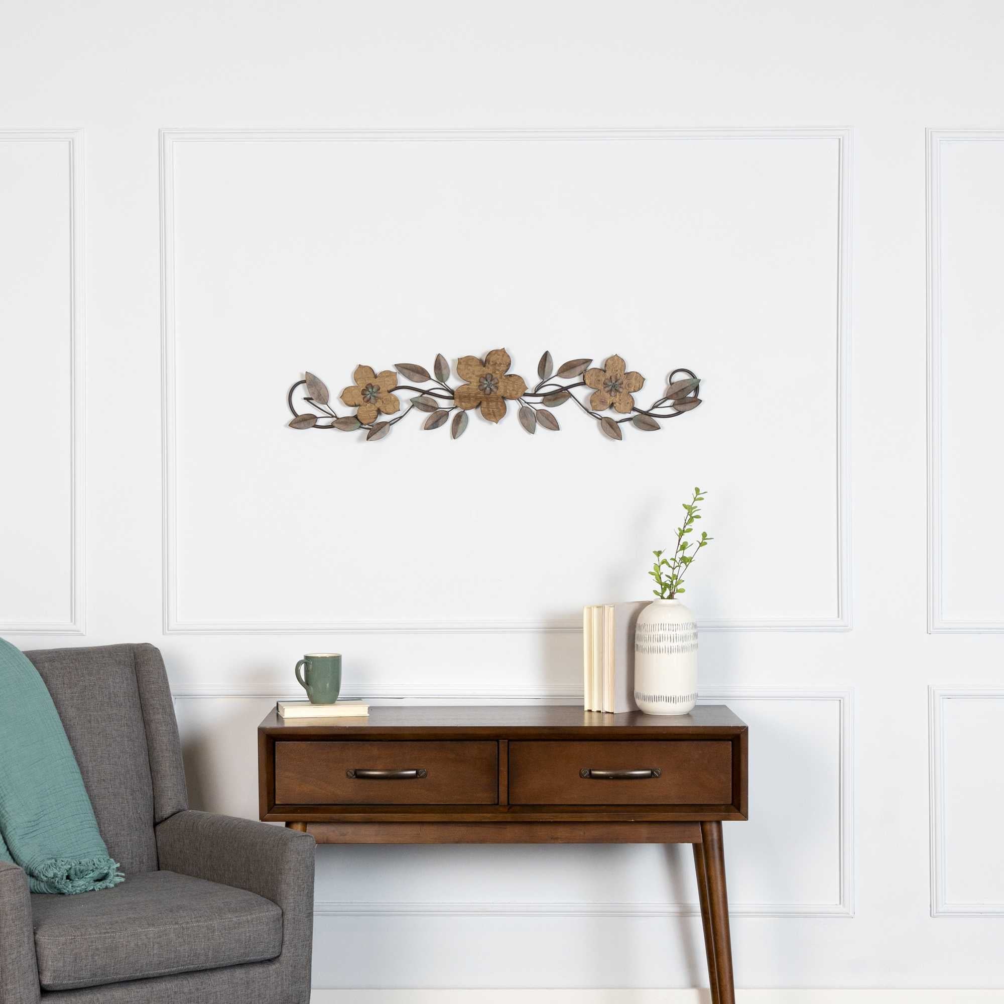 Floral and Espresso Wood Over The Door Metal Wall Decor