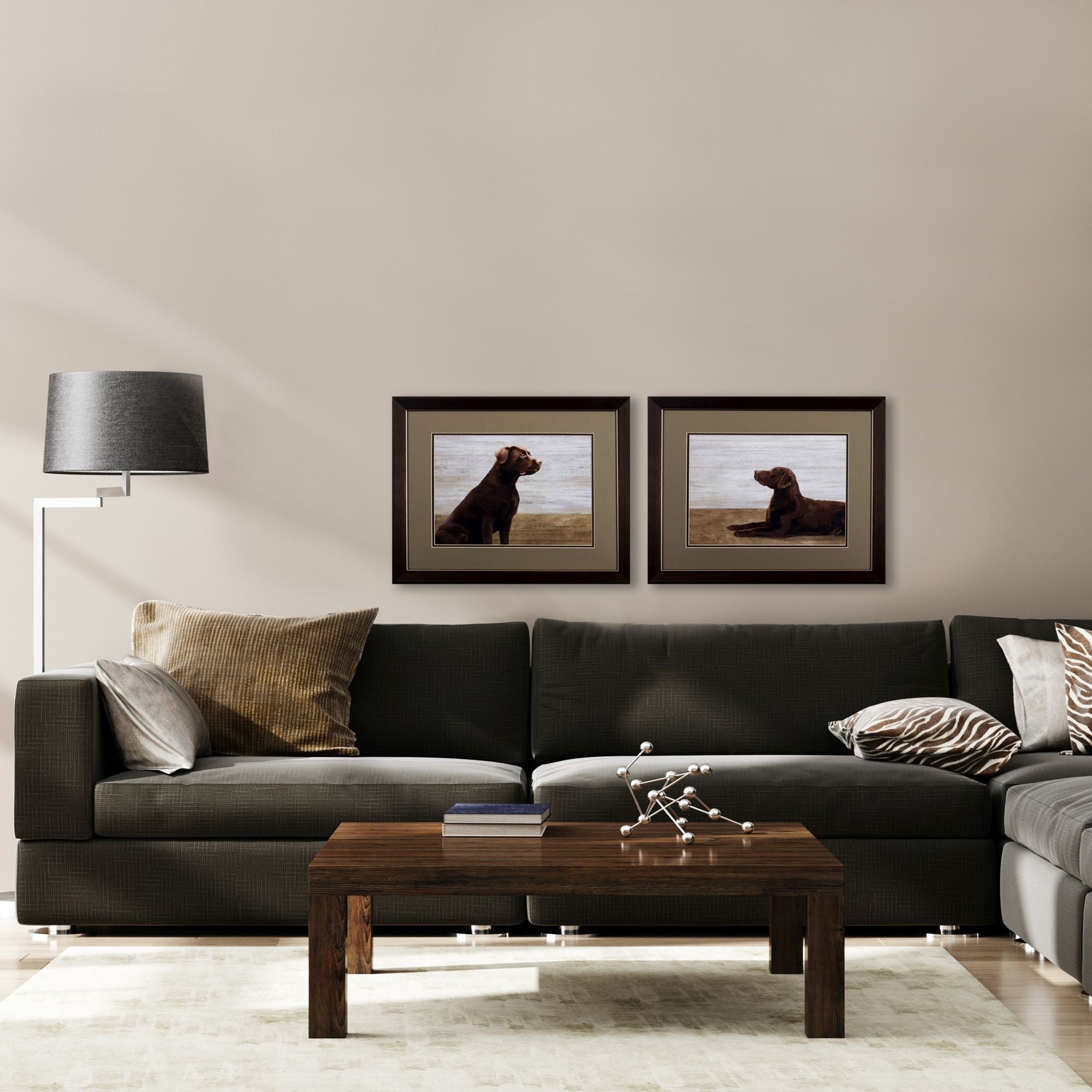 Add some visual interest to your space with this Set of Two Chocolate Lab Wall Art. Framed under glass in a metallic bronze frame, these adorable chocolate labs are double matted and will look great in almost any room. The coordinating set can be hung together or used separately as you choose. 20" x 24" x 1" each. Set of 2.
