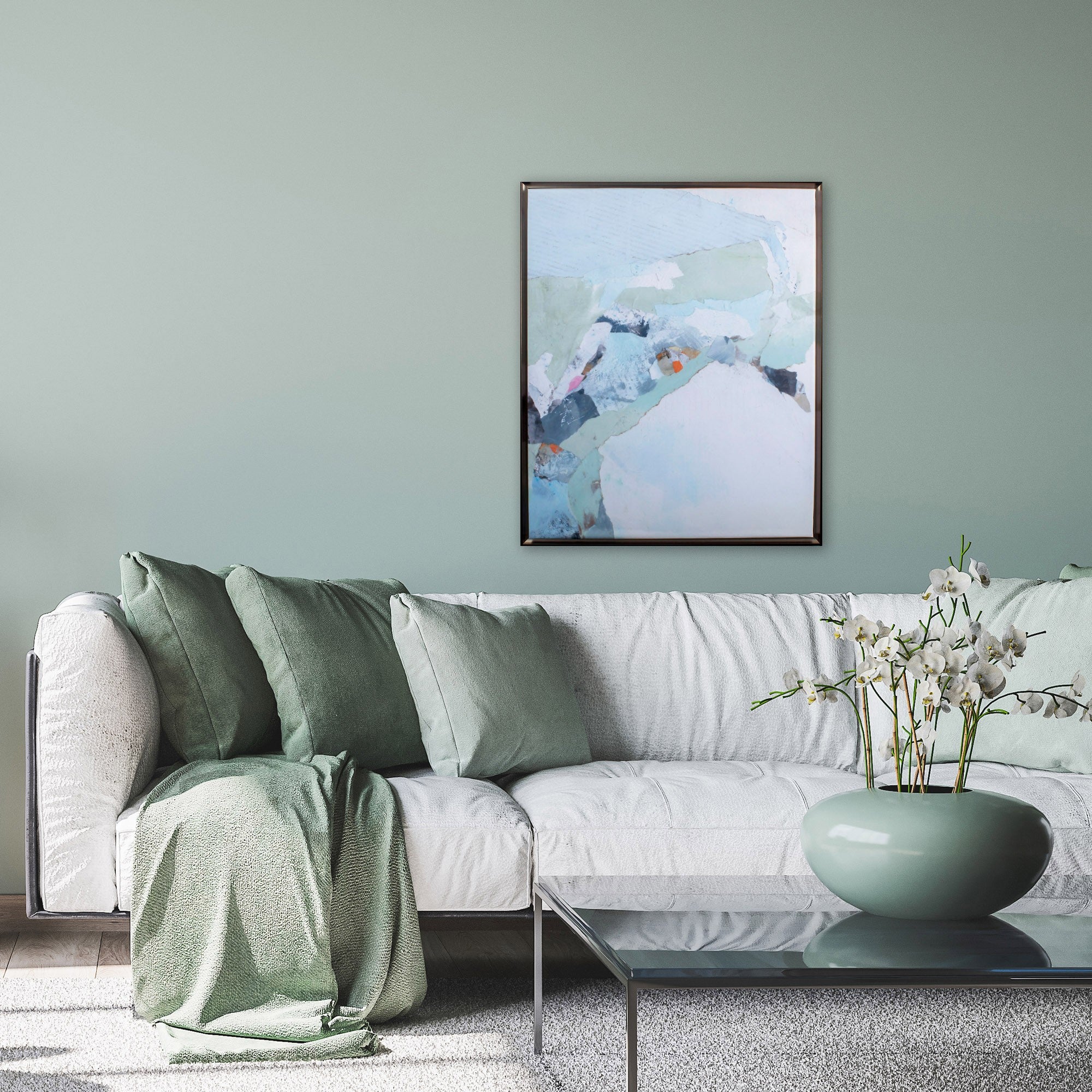 Contemporary and unique, this Shades of Blue Abstract Mountain Wall Art will liven up your space. This canvas is wrapped over a solid wood stretcher bar with brown moulding. Add this striking canvas print for a modern unique look to your living room, bedroom, entranceway, or office. 36" x 30" x 3".