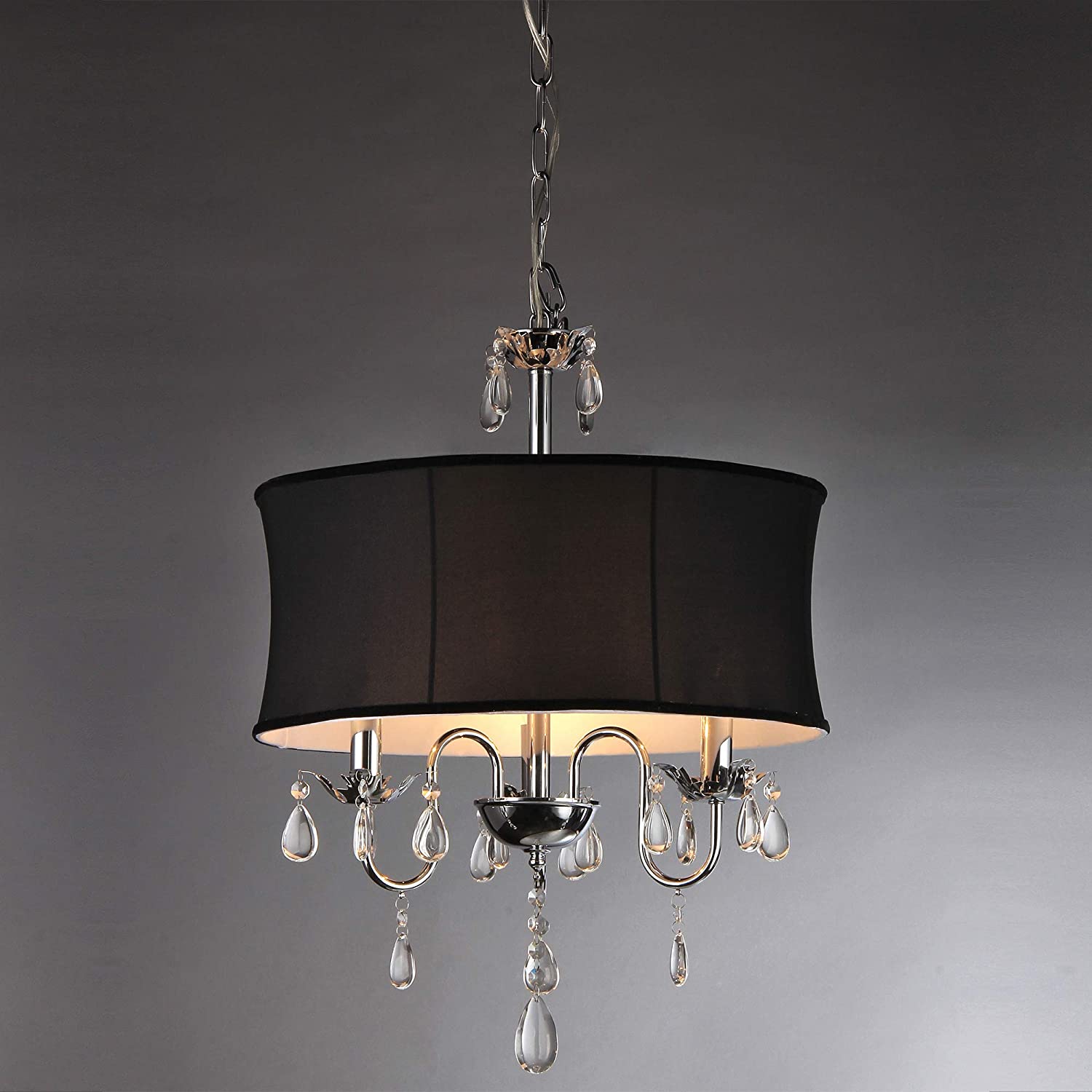 Cascading with sparkling teardrop crystals and finished with a matte black, cylindrical shade, lend a dramatic element to your home with this elegant one-light chandelier. This romantic light fixture boasts a dynamic aesthetic with a chrome finish.