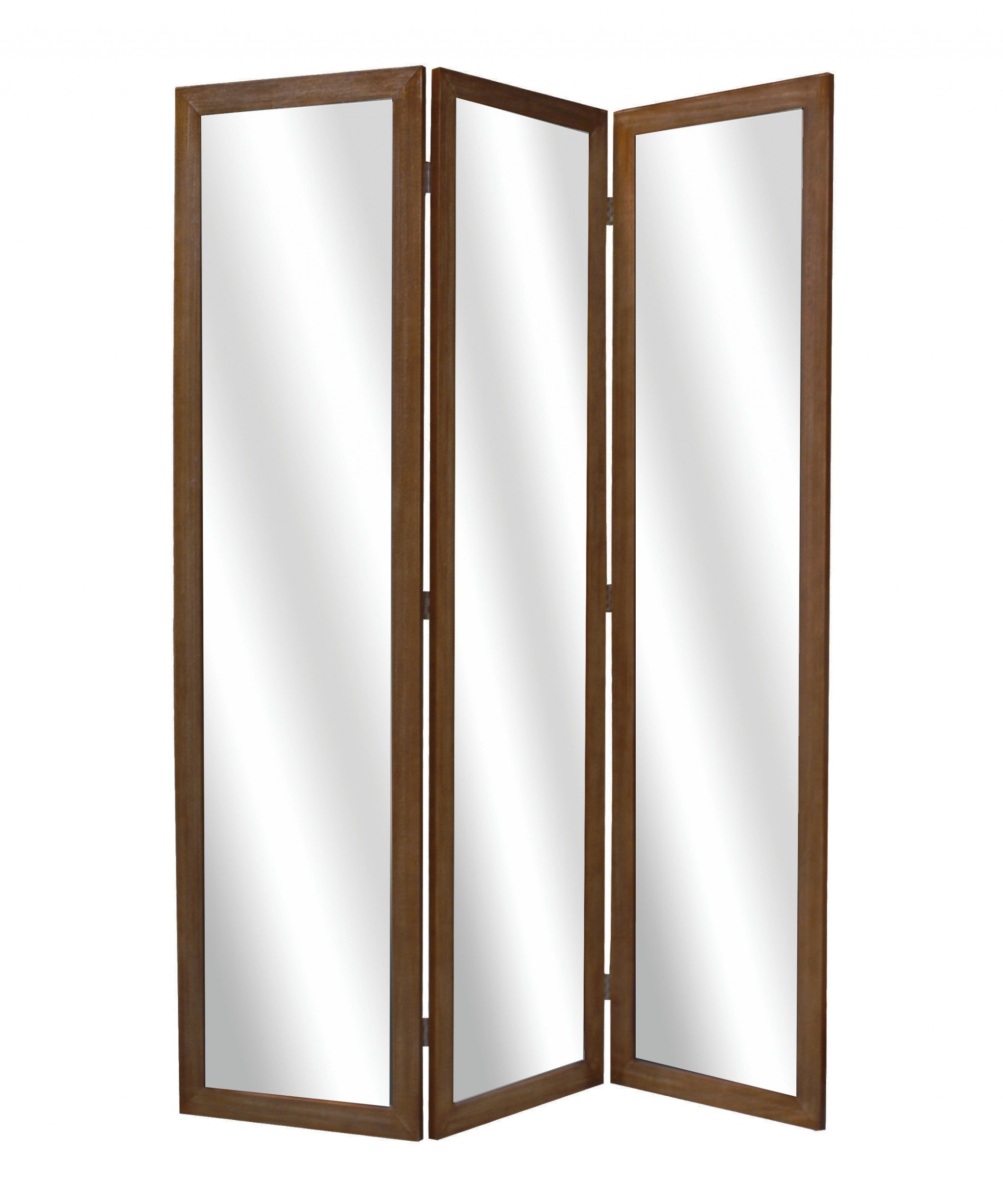 let our 3 panel glass and wood mirror screen inspire you as you make it a charming part of your beloved home setting. with alluring and exciting appearance, this screen with brighten your home decor with an atmosphere of possibilities. featuring beautiful mirror screen and framed by wooden edge with brown finish. the overall design comes with creative concept to inspire your world for many years to come. -3 panel screen glass and wood brown finish finished on both sides