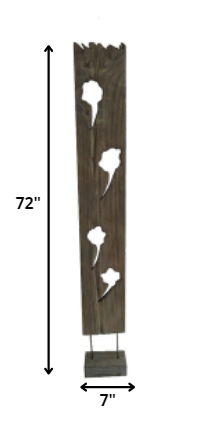 ignite in your space a strong feel of natural charm and grandeur when you incorporate this imposing wood sculpture to your house decor. it is finely carved from durable organic wood and concluded with a lustrous shine. this weathered brown tall figurine stands at 10 by 7 by 72 inches, certain to be a head-turner any time. place this free standing floor sculpture at any vantage point in your home to get an electrifying view from all angles. entry ways, book shelves, center tables or desk are the catchiest spots to consider displaying this sculpture.