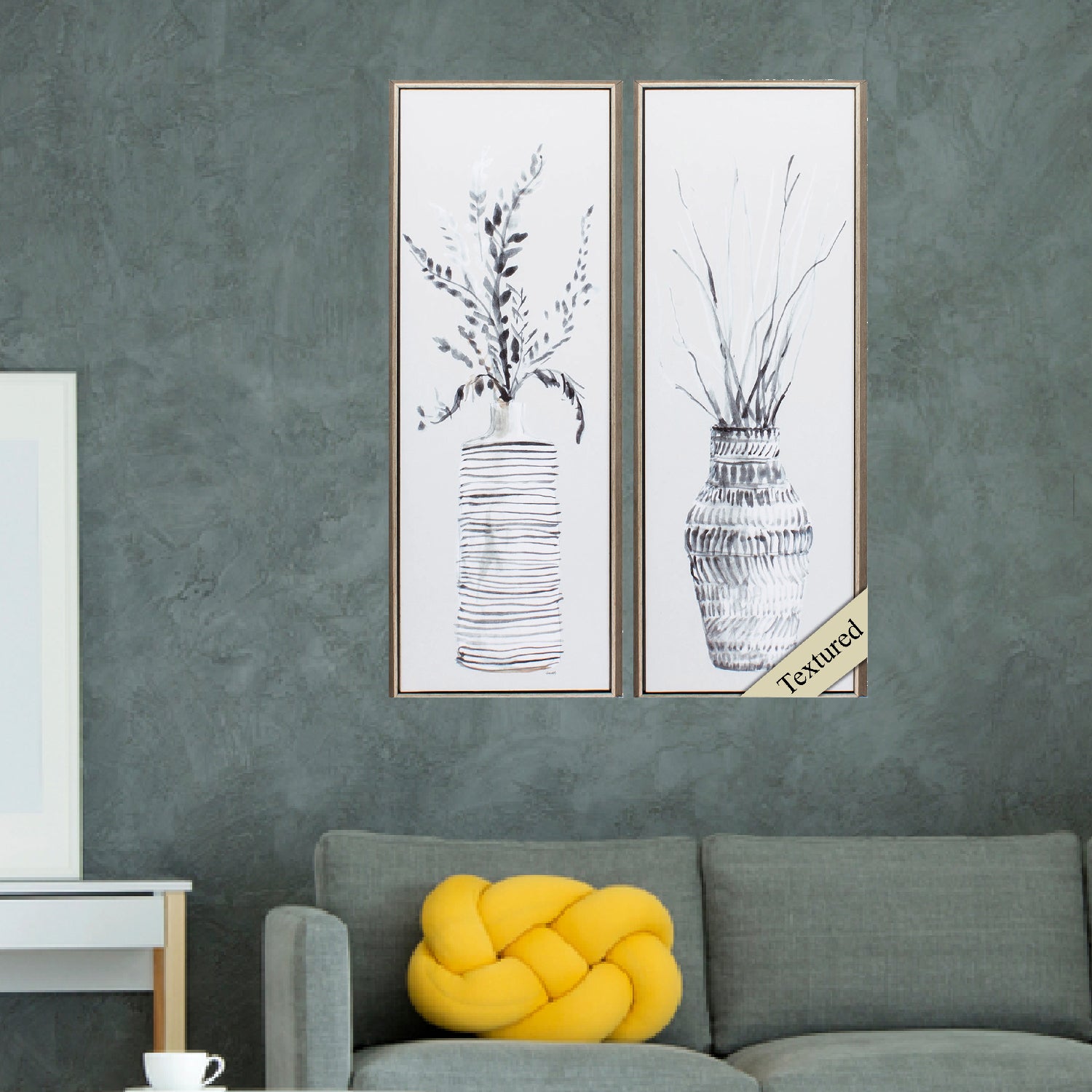 11' X 31' Champagne Color Frame Textured Vase Panel (Set of 2)