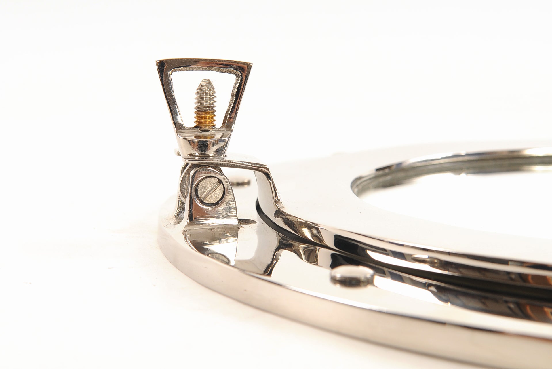 Porthole mirrors pay homage to the windows of old ships, creating a perfect balance between modern and vintage. This item is perfect as a centerpiece to any nautical-themed home and, since it opens at the hinged, it can also be used as a door. Features: Mirror diameter: 7.25" Overall diameter: 11.75" Material: Solid Brass Mounting hardware included: 3 screws and ribbed anchors.