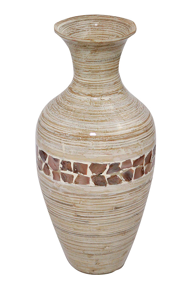 12" X 12" X 25" Distressed White W/ Coconut Shell Bamboo Spun Bamboo Floor Vase