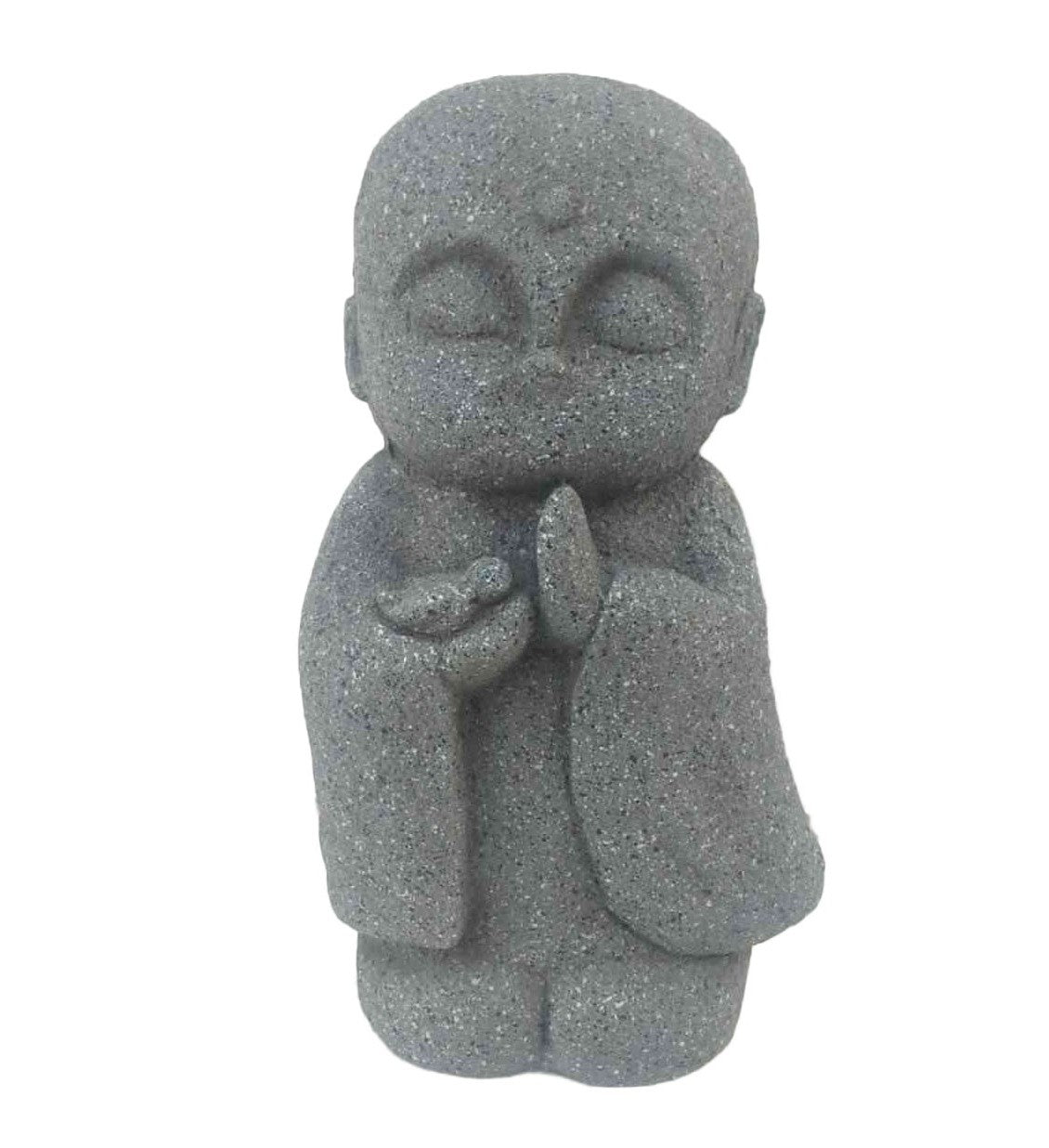 14" Gray Praying Monk with Bird Indoor Outdoor Statue