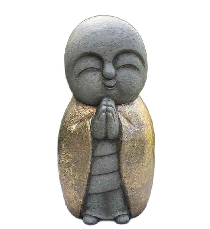 15" Gray and Gold Sweet Smiling Monk Indoor Outdoor Statue
