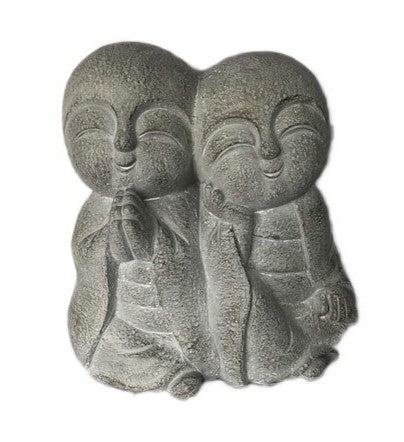 Add lots of good vibes to your space with this adorable Two Monks Back to Back Indoor Outdoor Statue. This joyful statue can be used indoors or out. The material looks like aged concrete, but the quality construction polyresin is lighter, more durable, and built to last for years on end. This peaceful and whimsical statue makes a wonderful decorative addition to your living room, bedroom, patio, backyard or garden landscaping. 14.96" x 13.78" x 9.06".